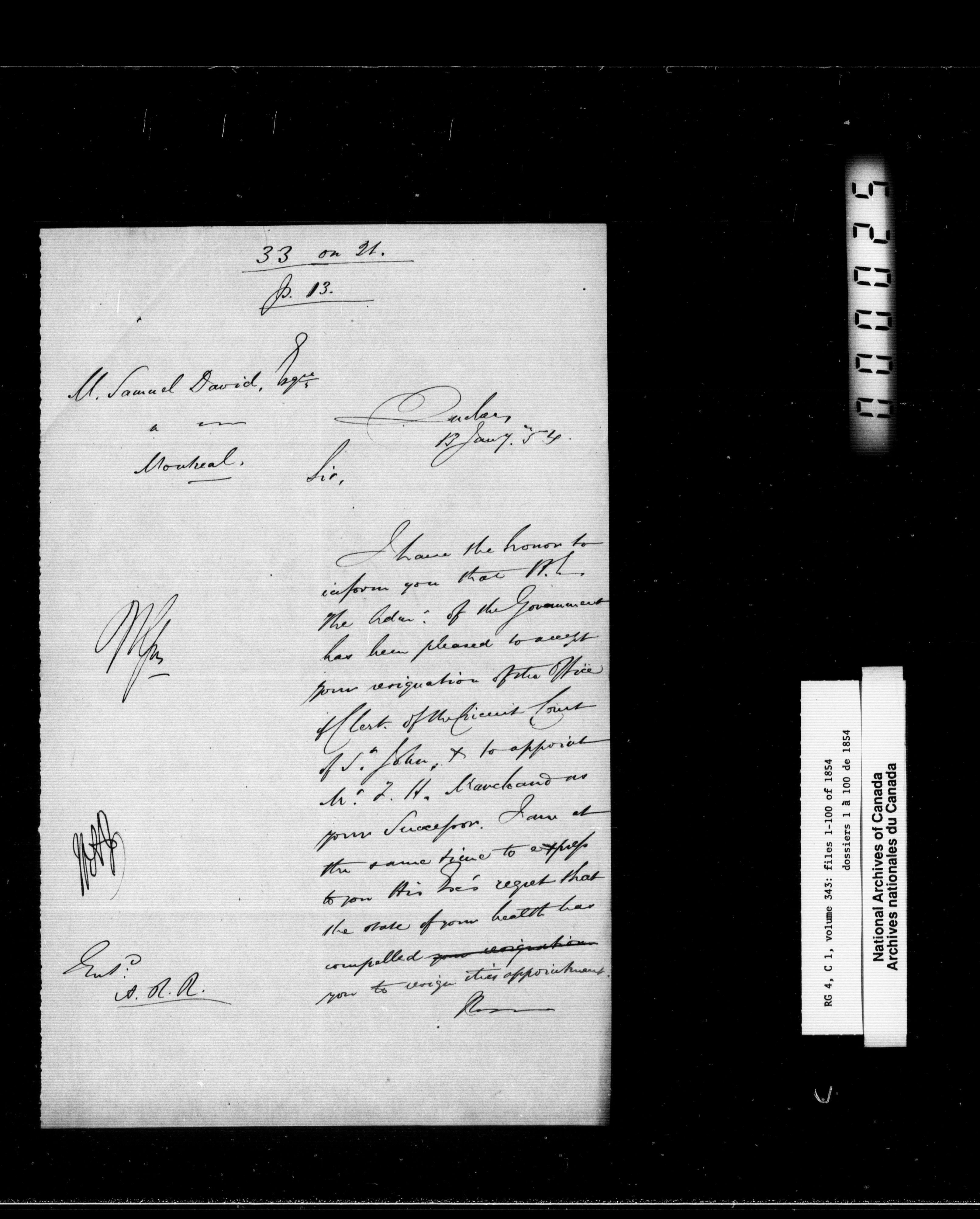 Canada East : Provincial Secretary numbered correspondence files, 1839-1867 - 2663