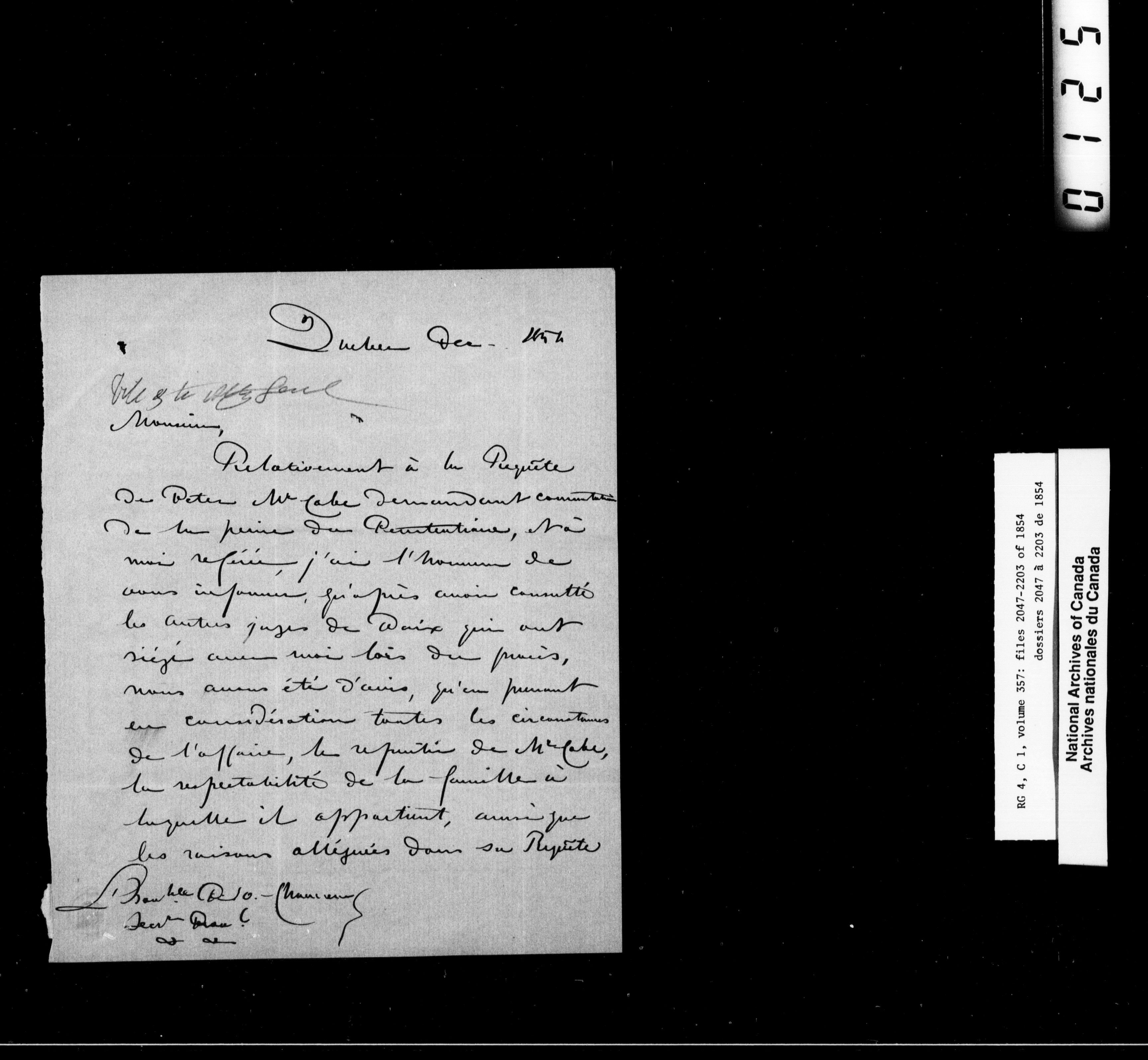 Canada East : Provincial Secretary numbered correspondence files, 1839-1867 : H-2672