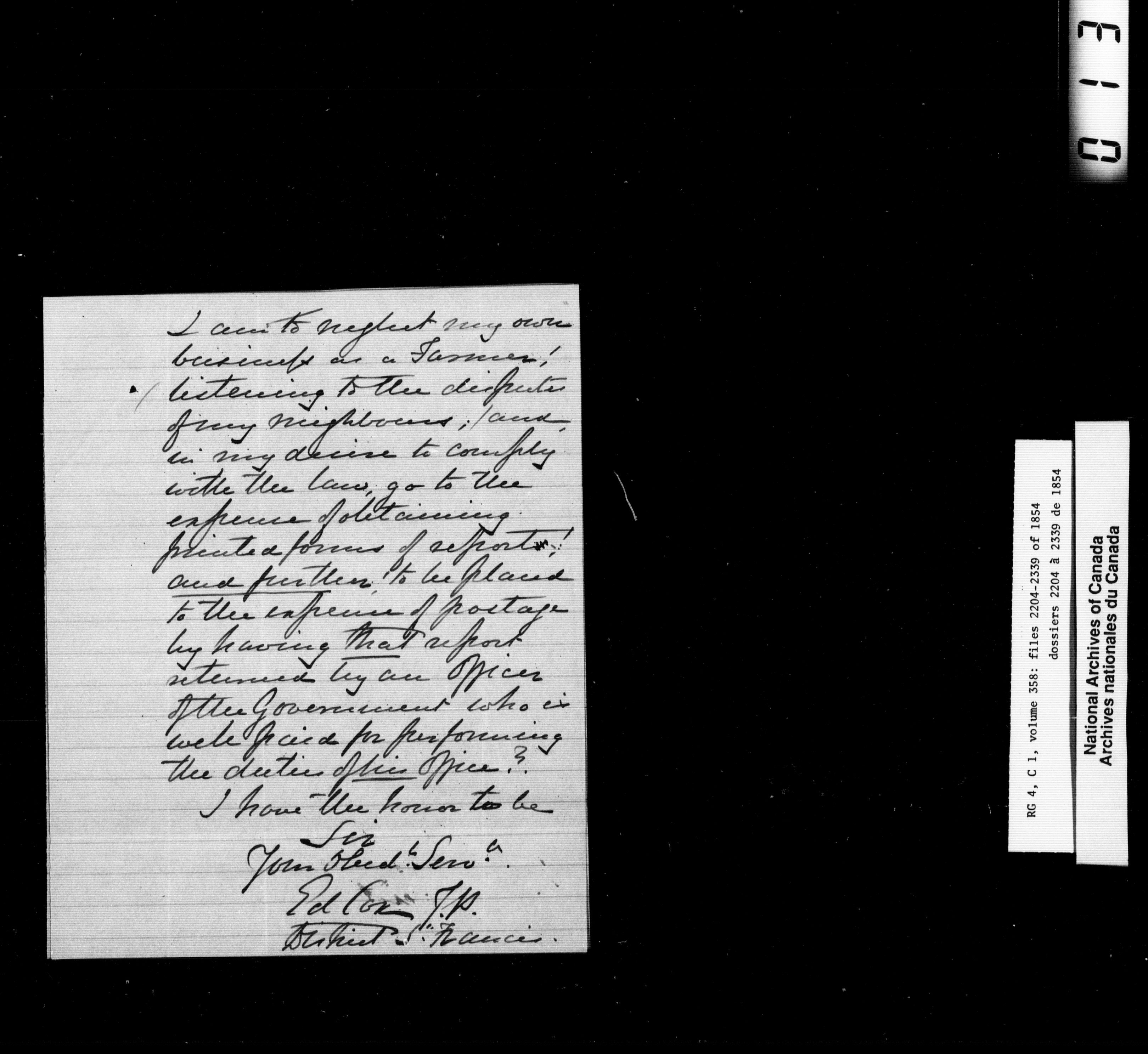 Canada East : Provincial Secretary numbered correspondence files, 1839-1867 - 2673