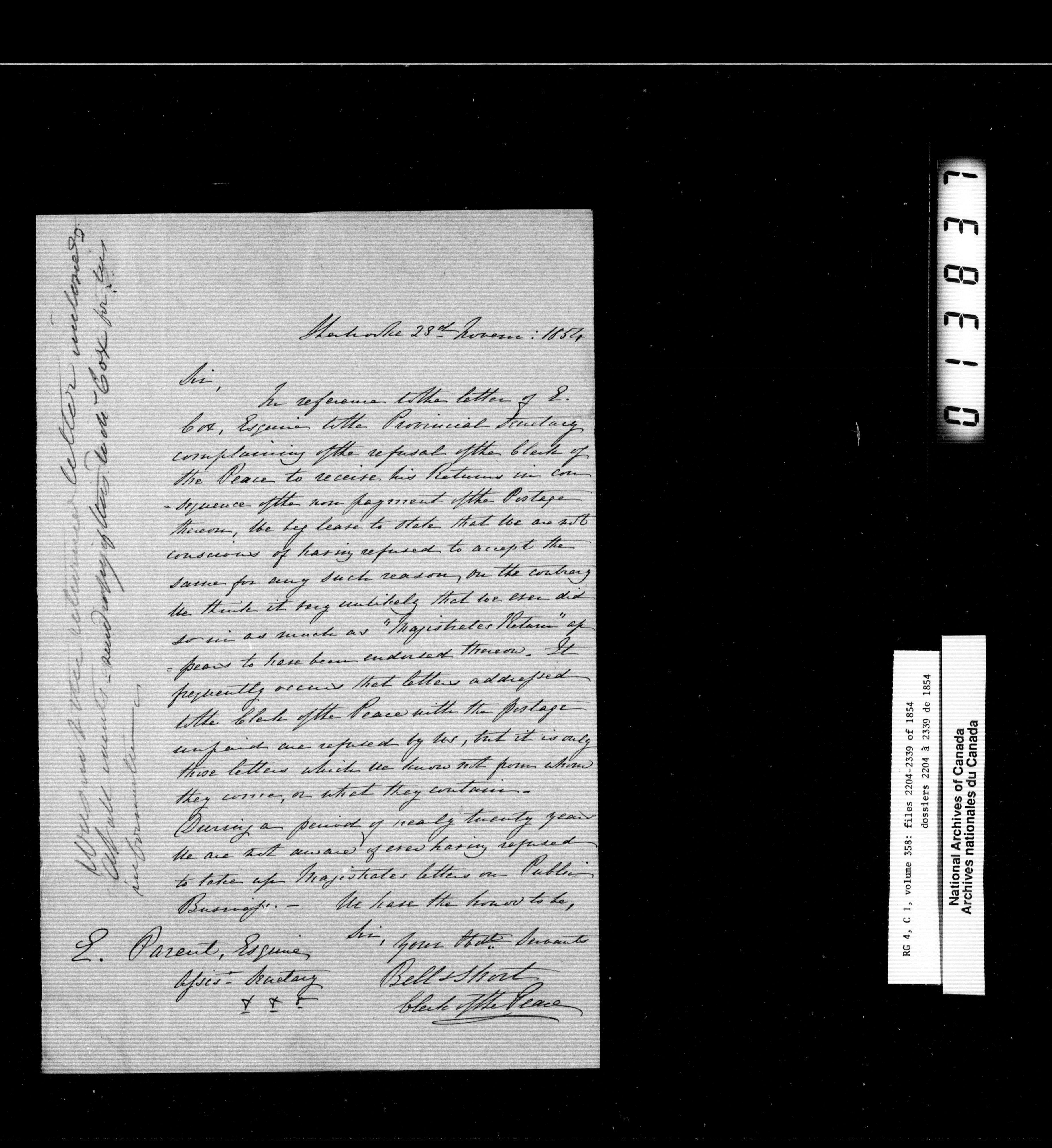 Canada East : Provincial Secretary numbered correspondence files, 1839-1867 - 2673