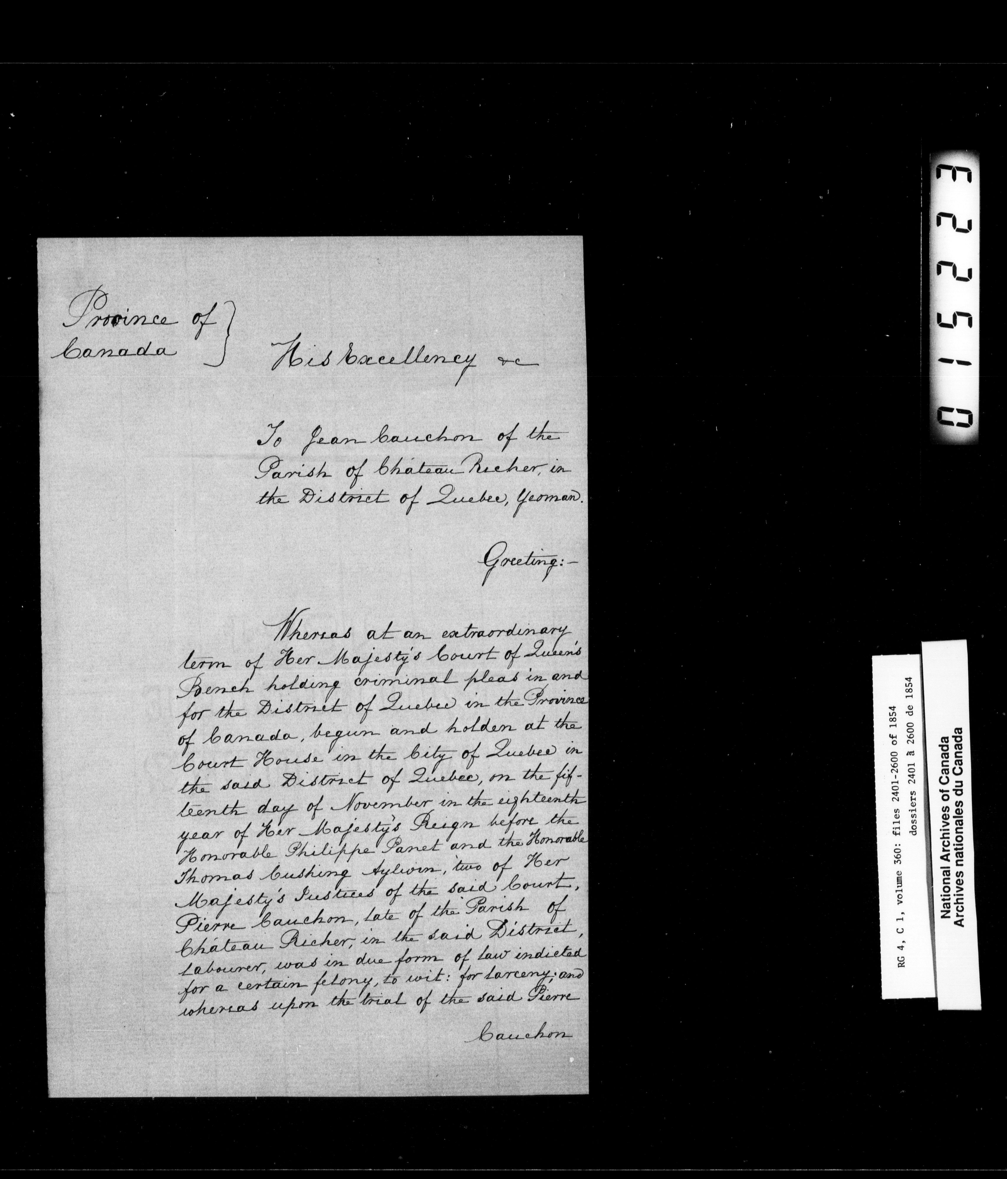 Canada East : Provincial Secretary numbered correspondence files, 1839-1867 - 2674