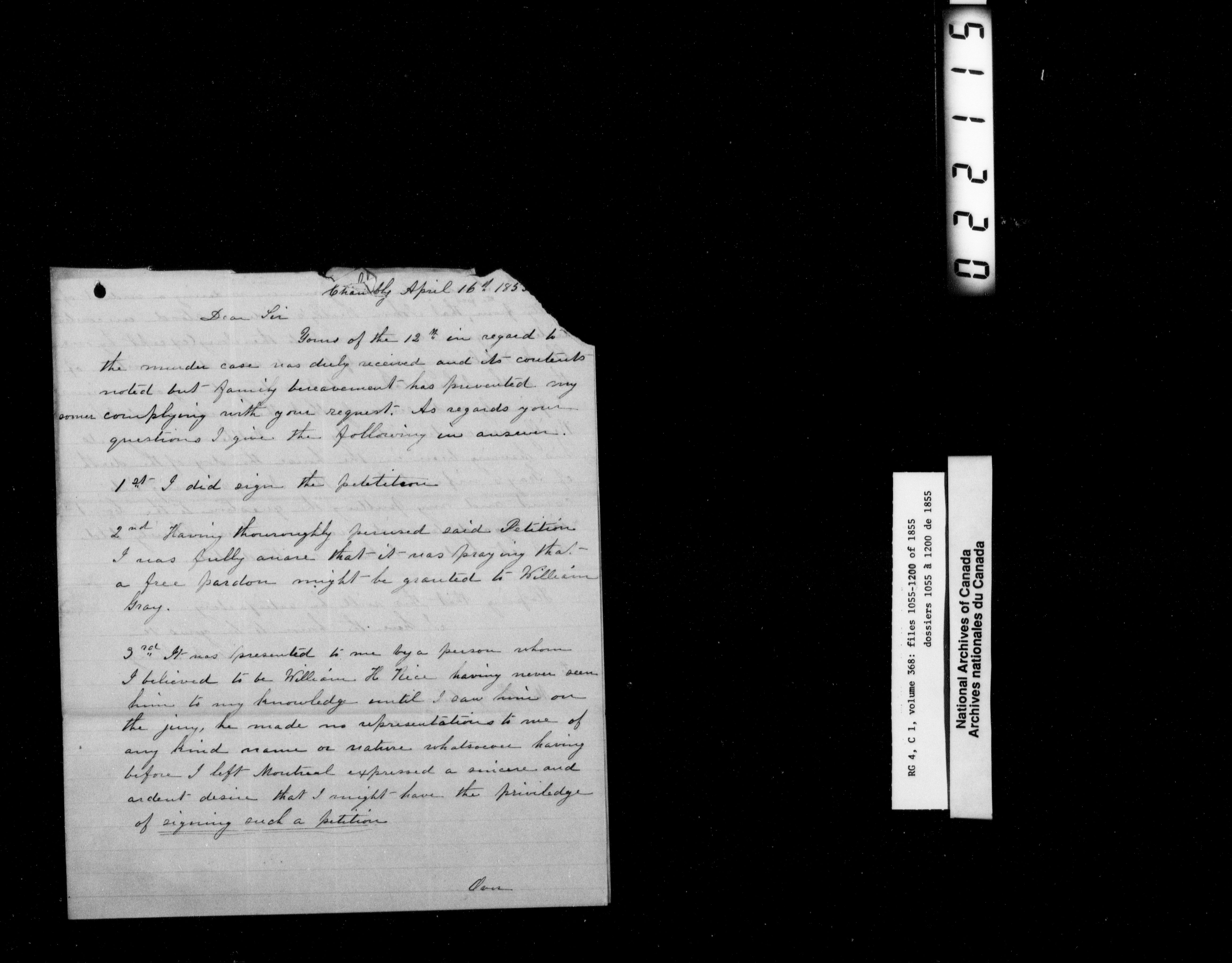 Canada East : Provincial Secretary numbered correspondence files, 1839-1867 : H-2678