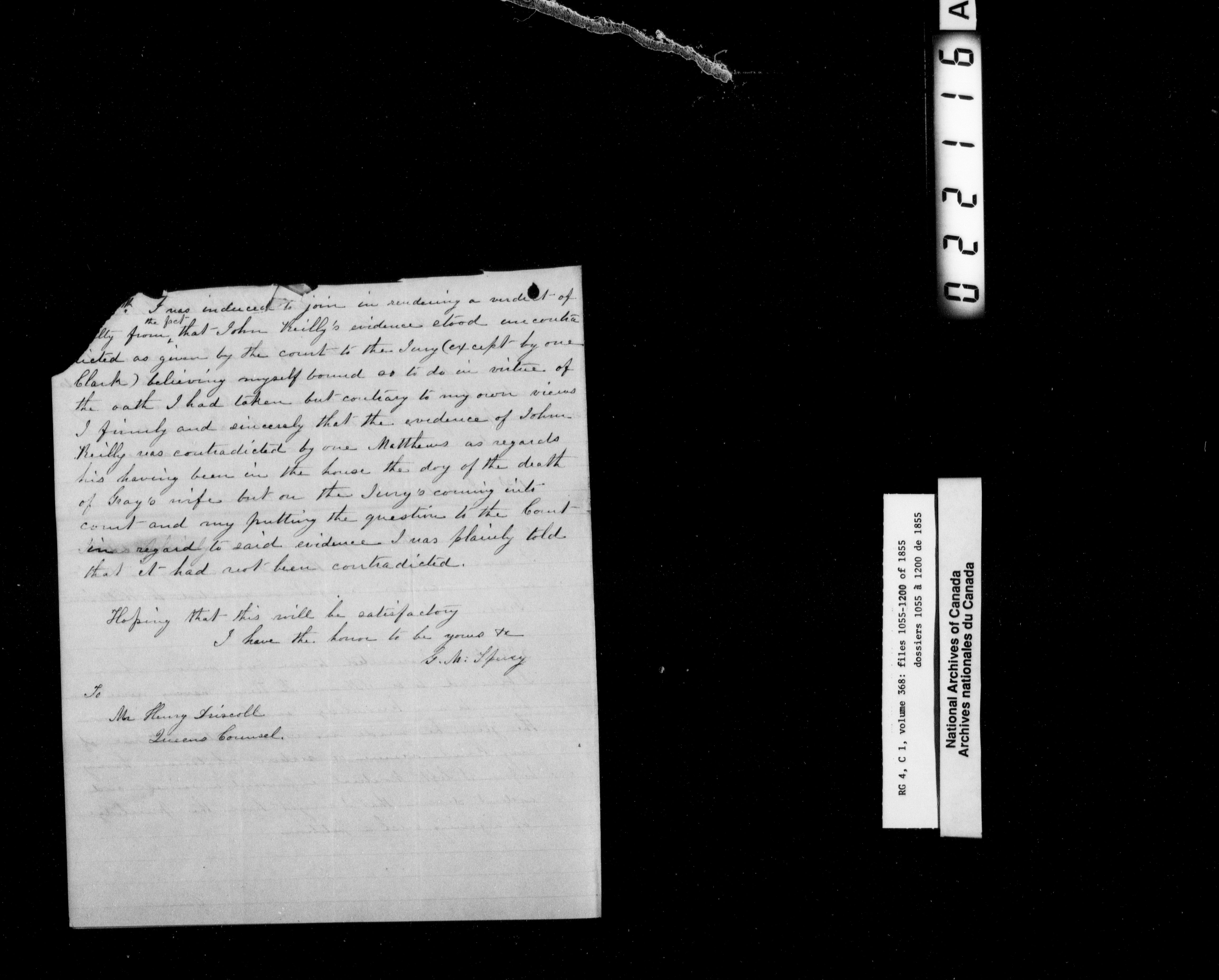 Canada East : Provincial Secretary numbered correspondence files, 1839-1867 - 2678