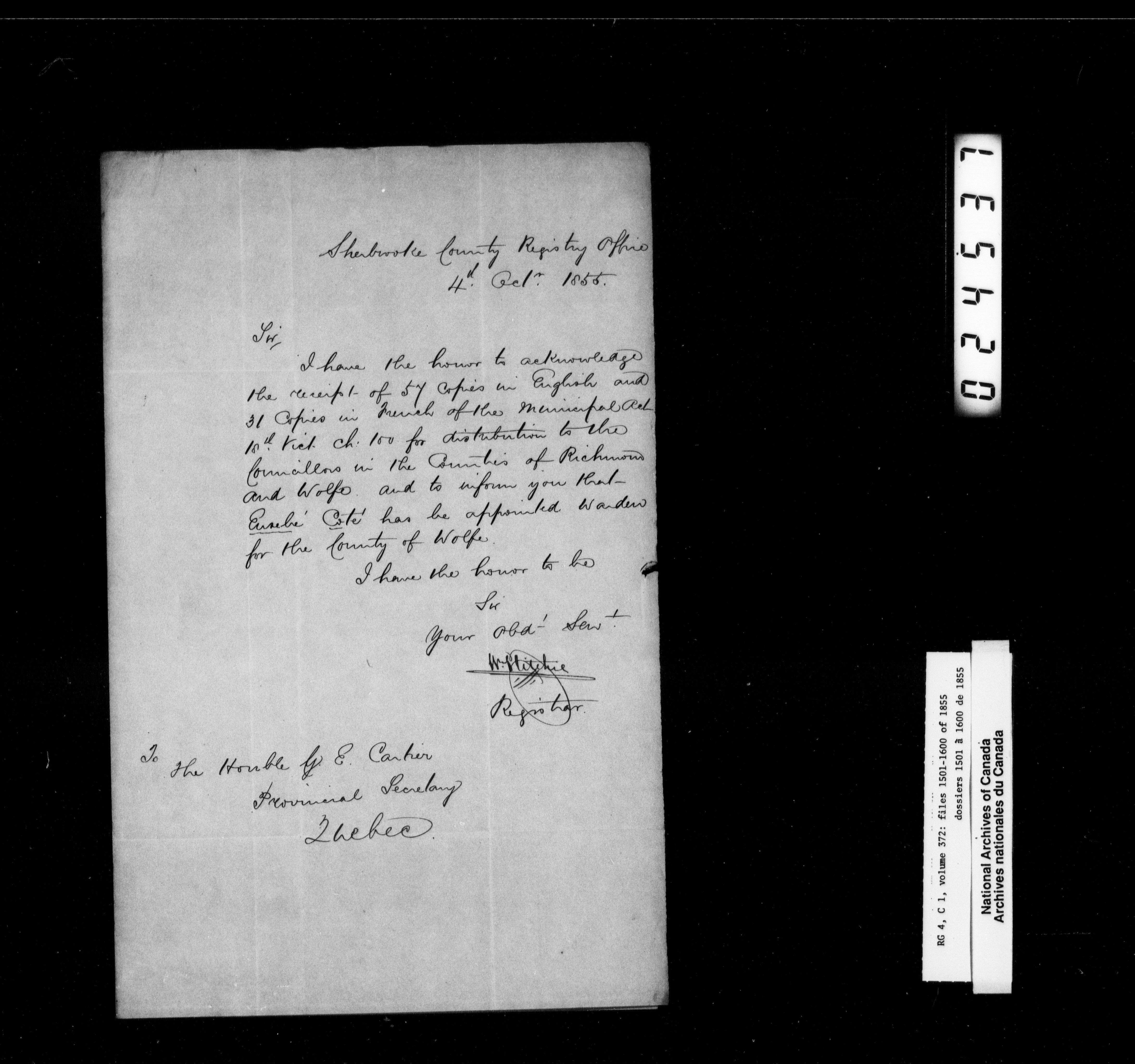 Canada East : Provincial Secretary numbered correspondence files, 1839-1867 - 2681