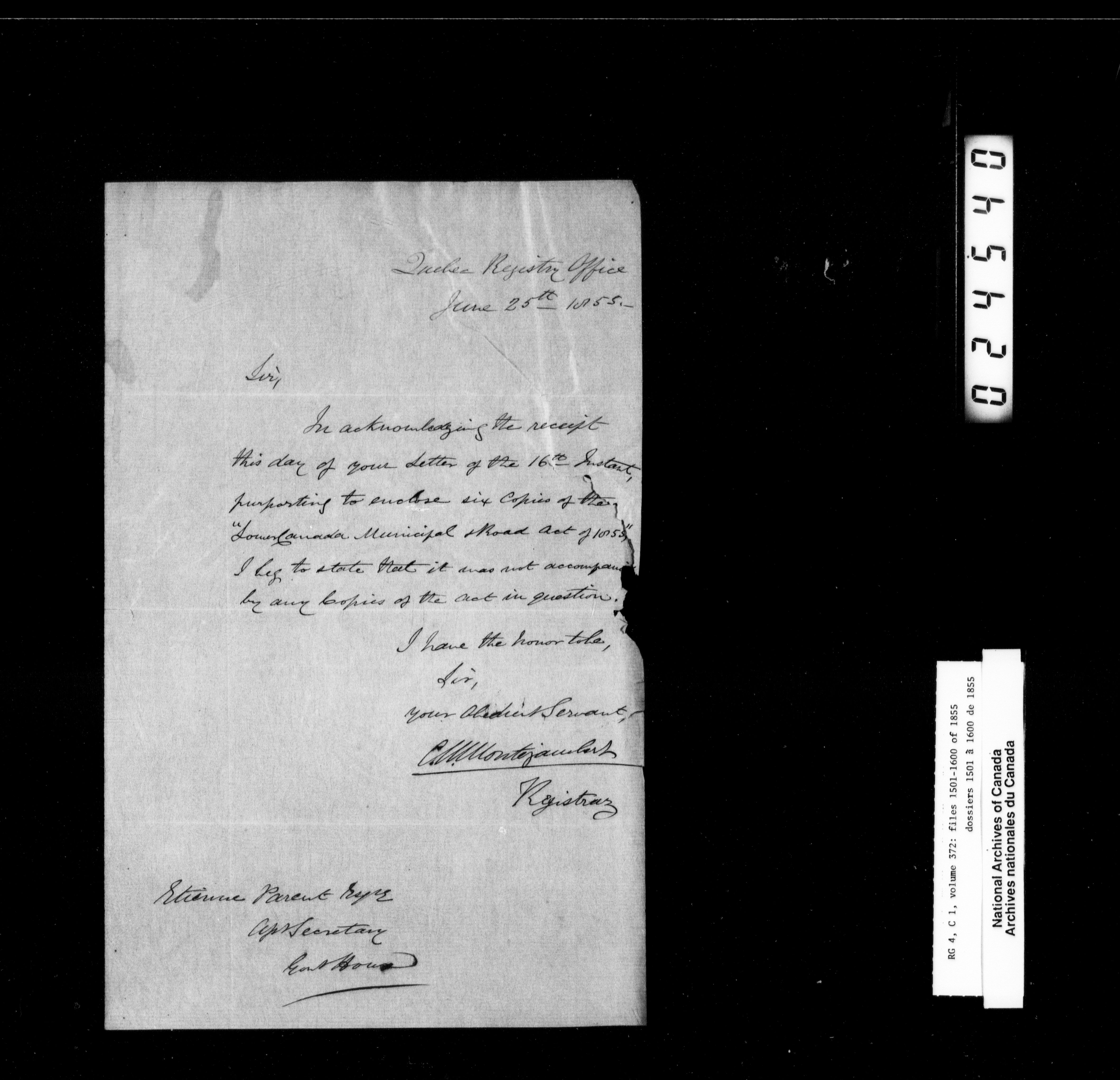 Canada East : Provincial Secretary numbered correspondence files, 1839-1867 - 2681