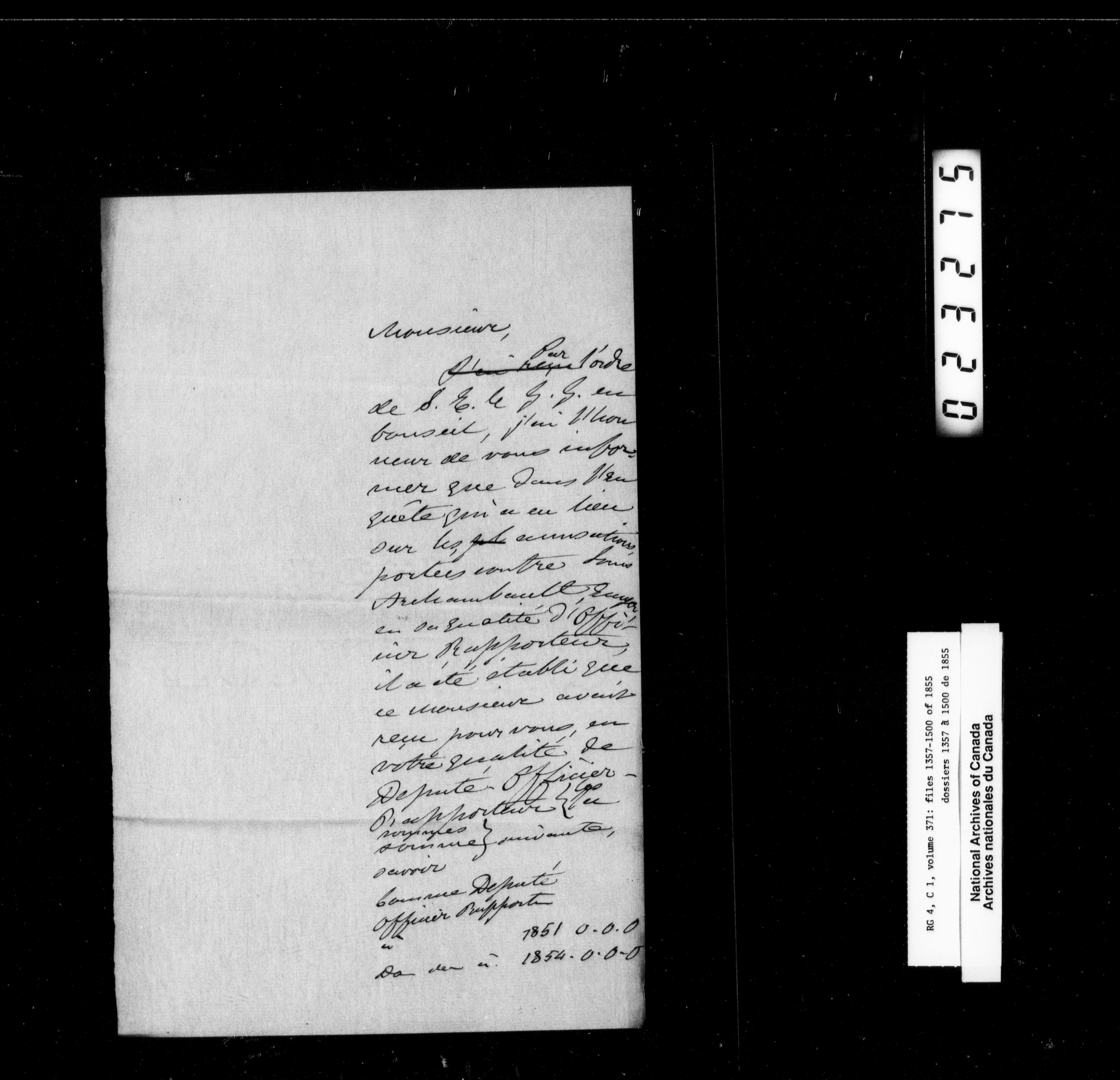Canada East : Provincial Secretary numbered correspondence files, 1839-1867 - 2681