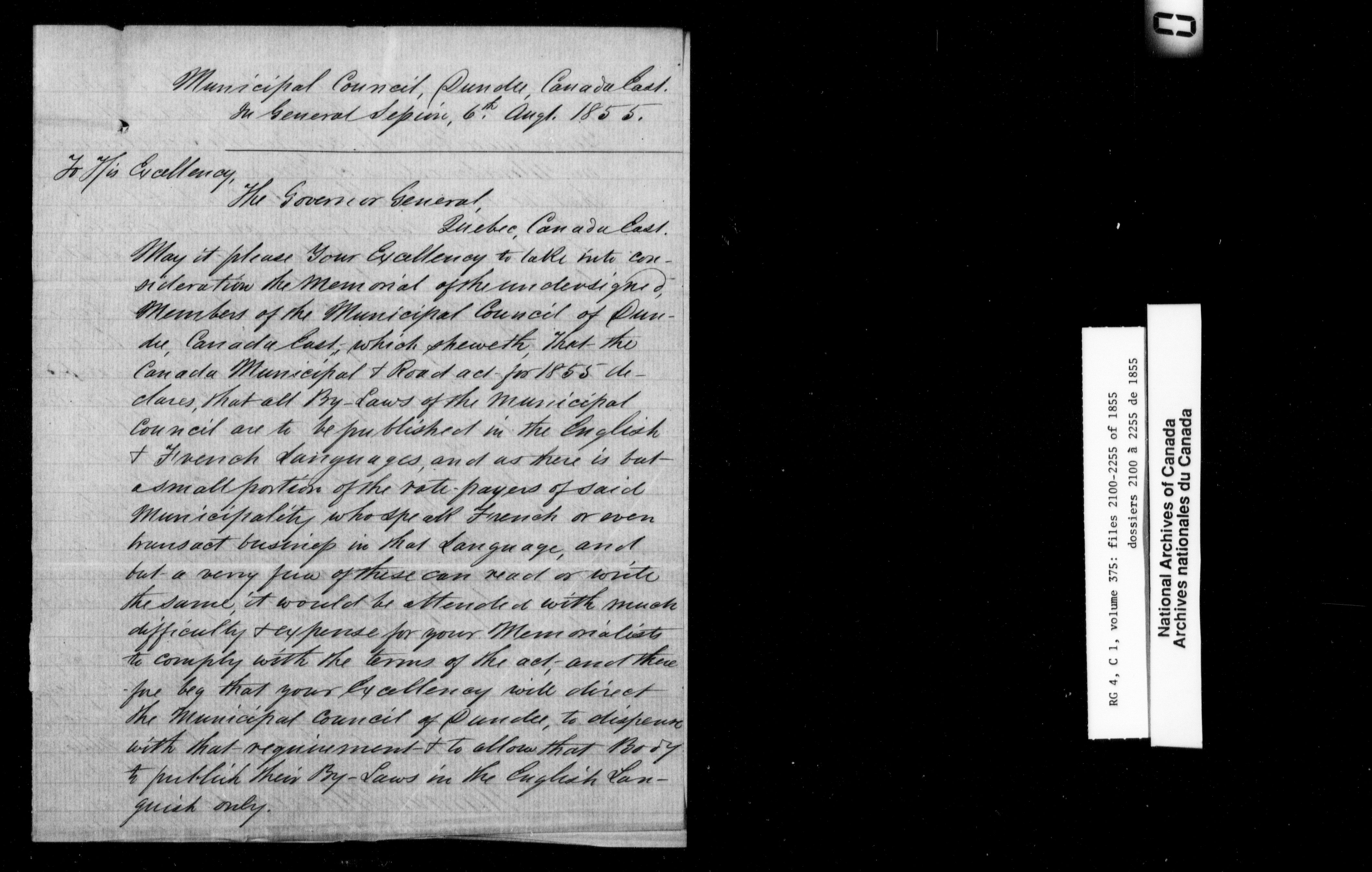 Canada East : Provincial Secretary numbered correspondence files, 1839-1867 - 2683