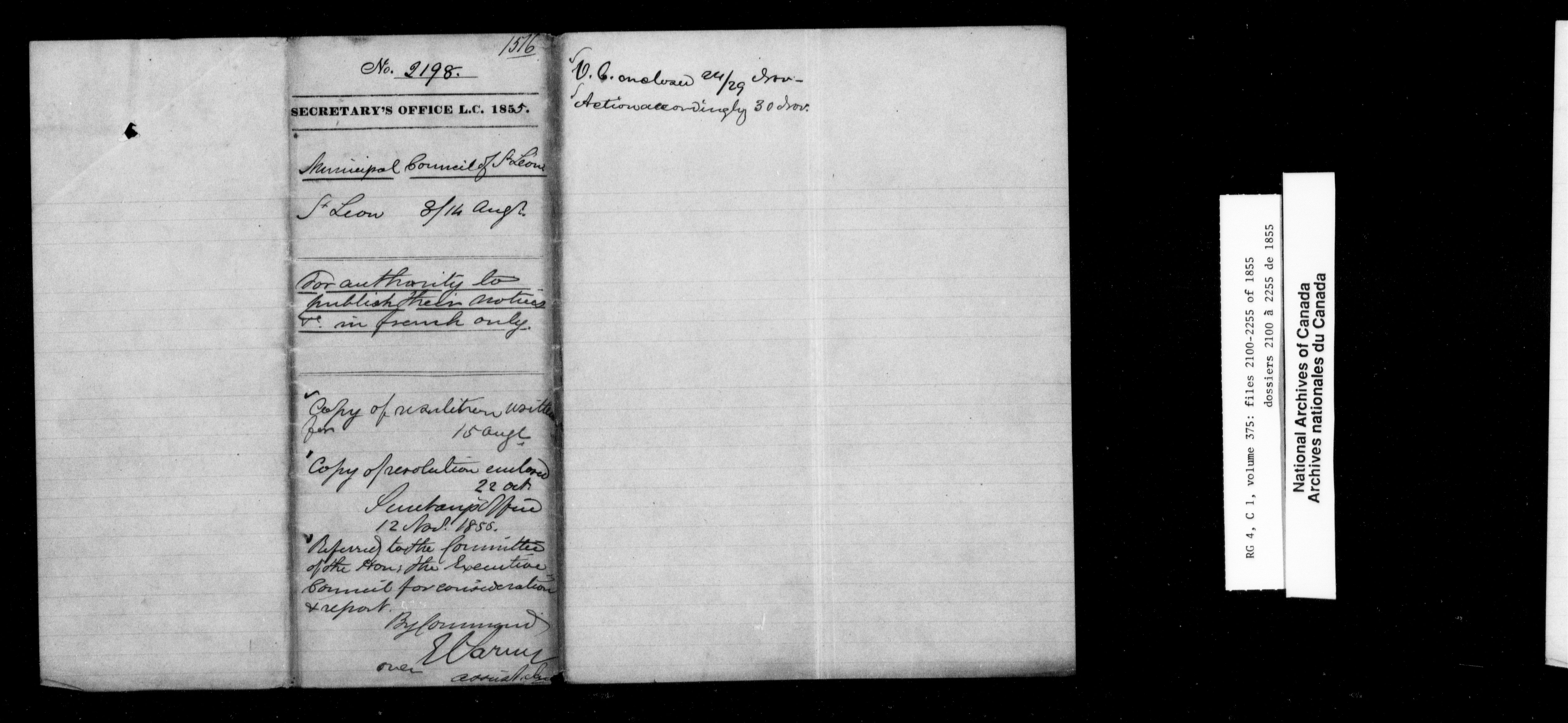 Canada East : Provincial Secretary numbered correspondence files, 1839-1867 - 2683