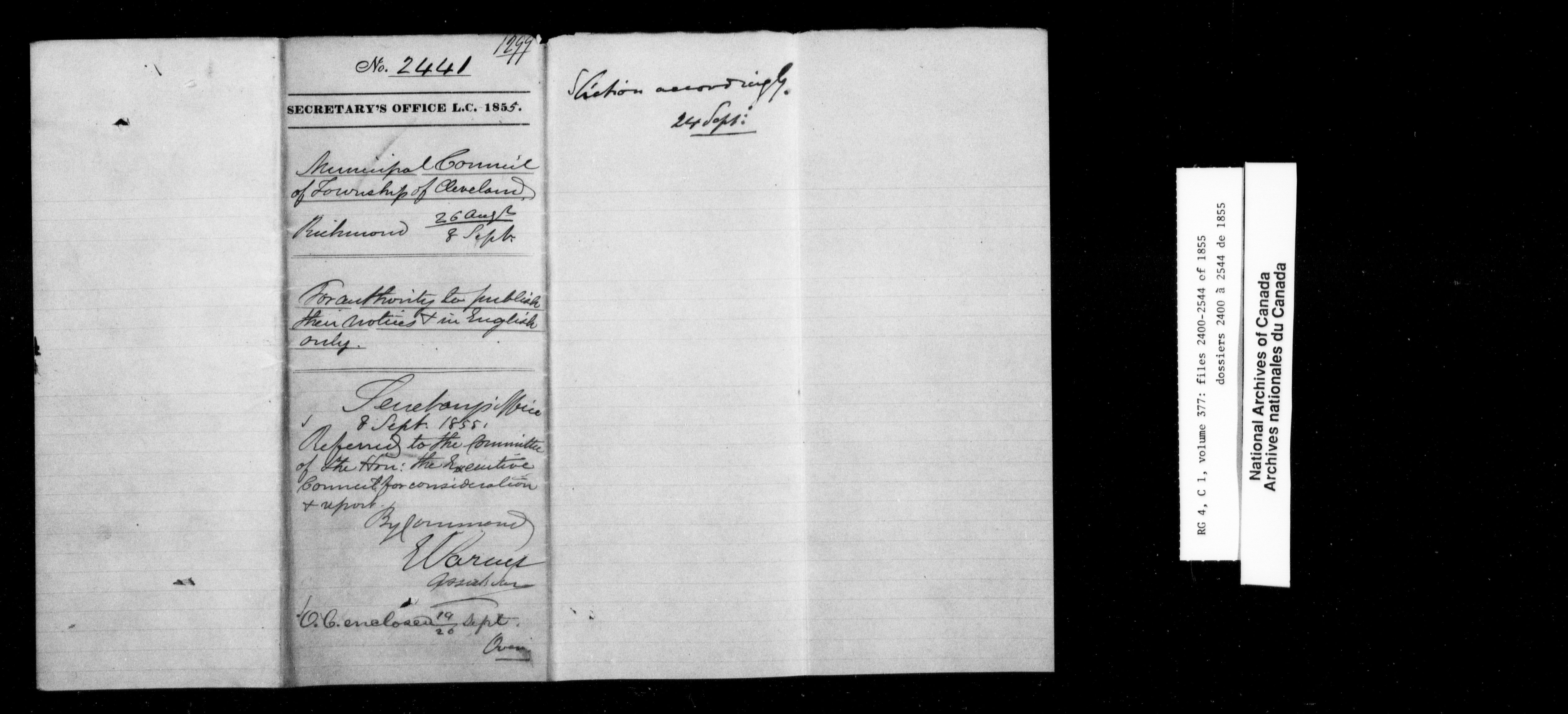 Canada East : Provincial Secretary numbered correspondence files, 1839-1867 - 2685