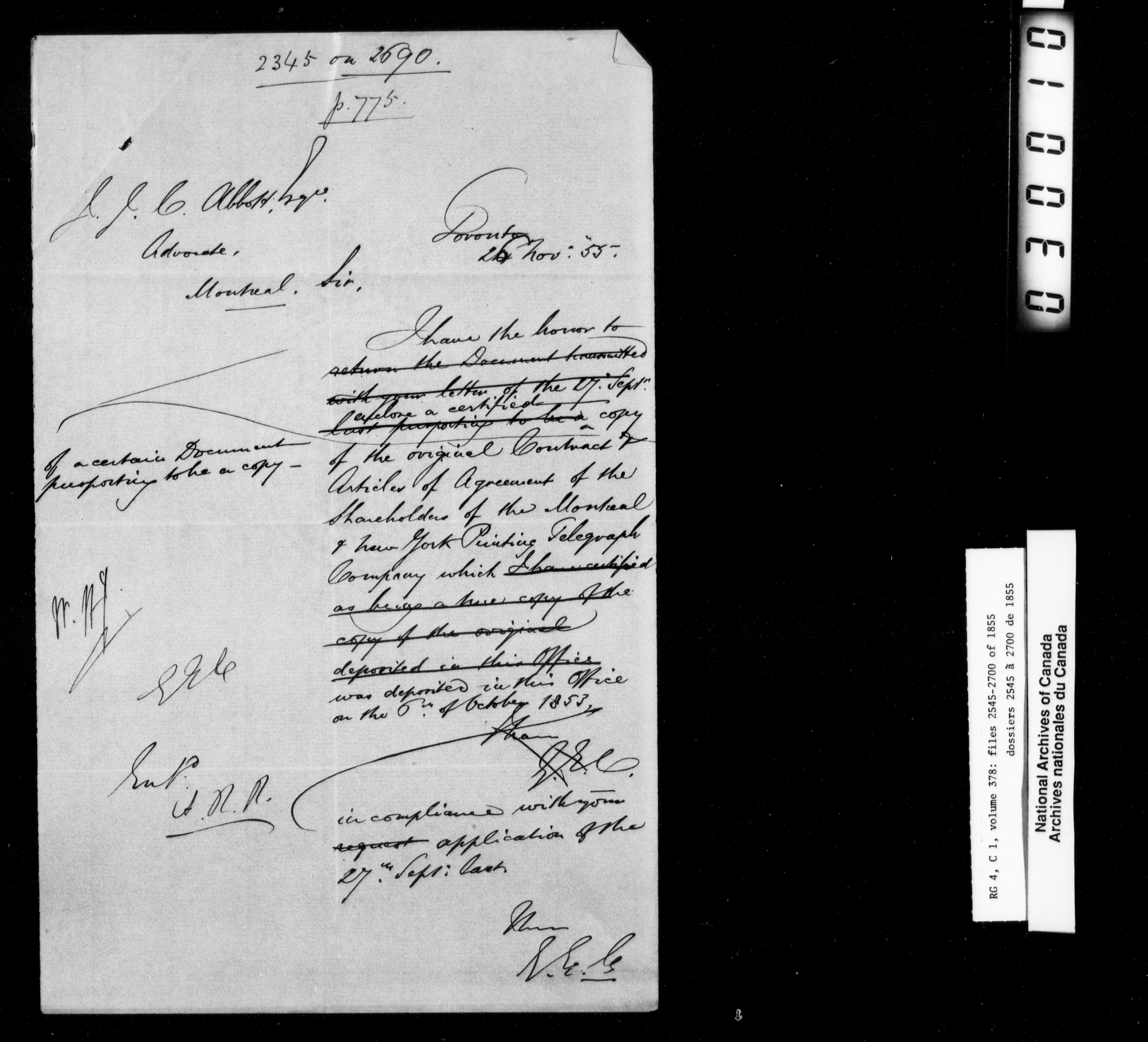 Canada East : Provincial Secretary numbered correspondence files, 1839-1867 - 2685