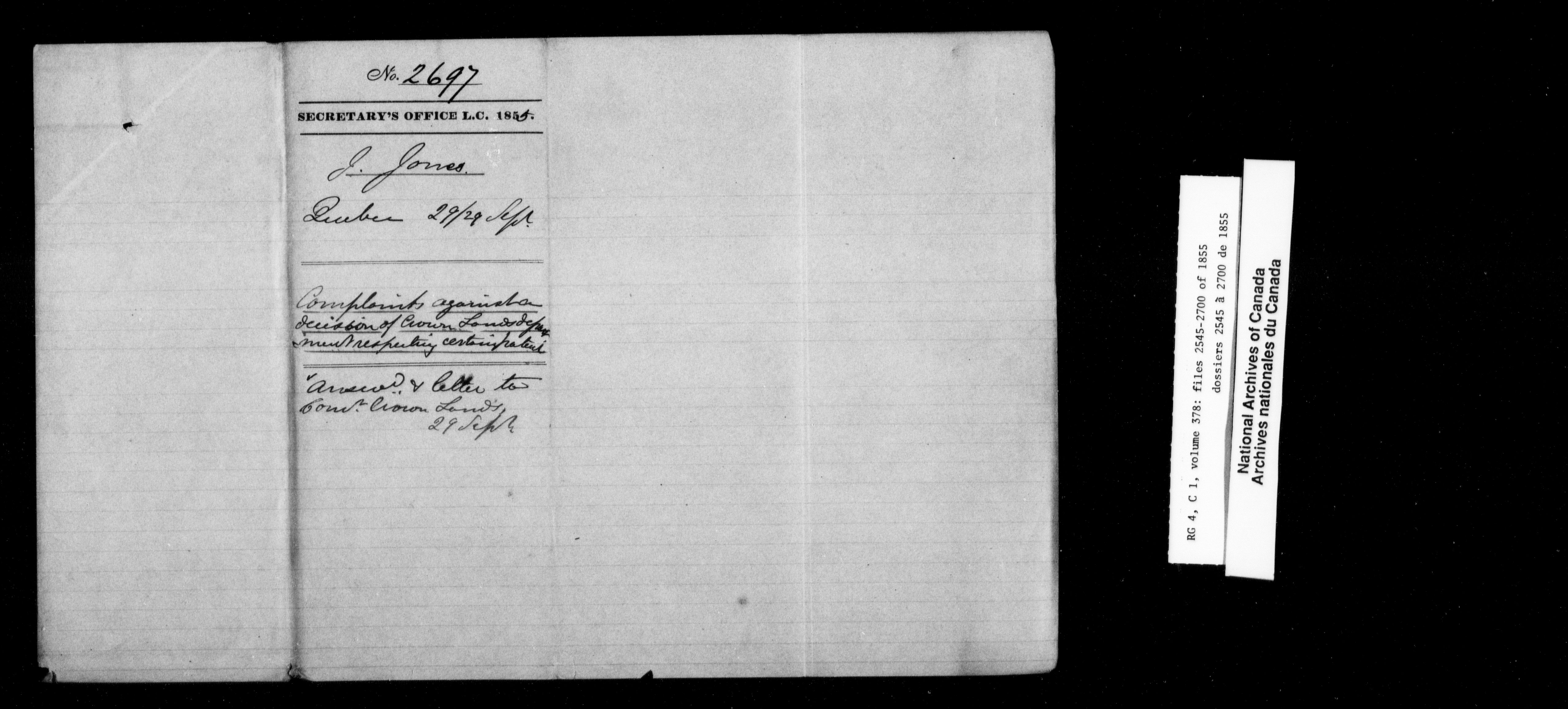 Canada East : Provincial Secretary numbered correspondence files, 1839-1867 - 2685
