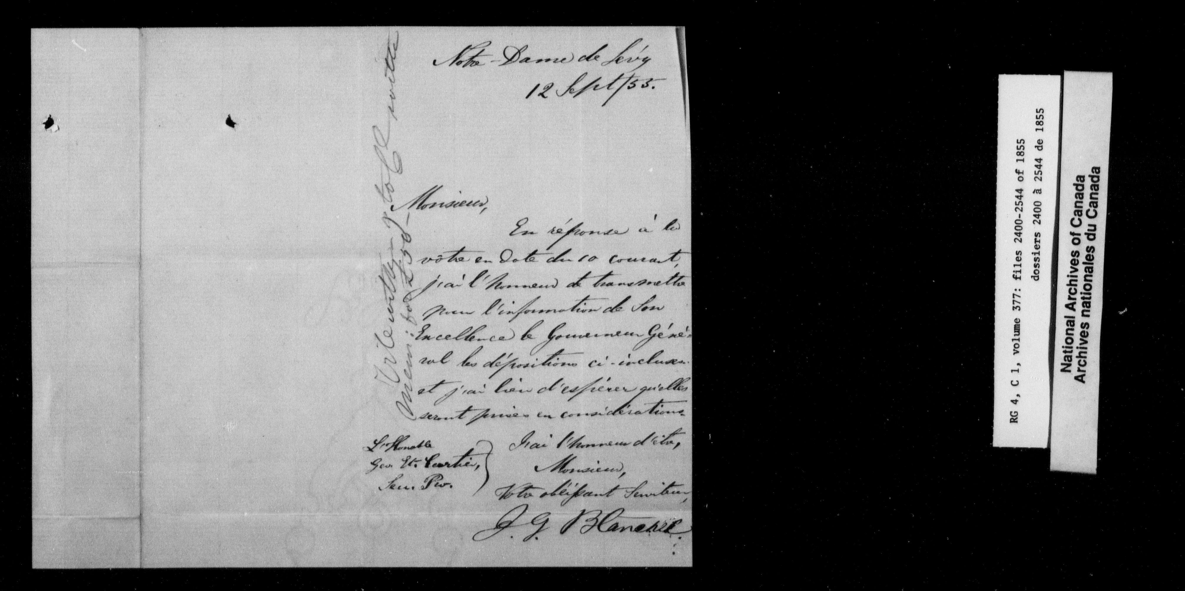 Canada East : Provincial Secretary numbered correspondence files, 1839-1867 - 2685