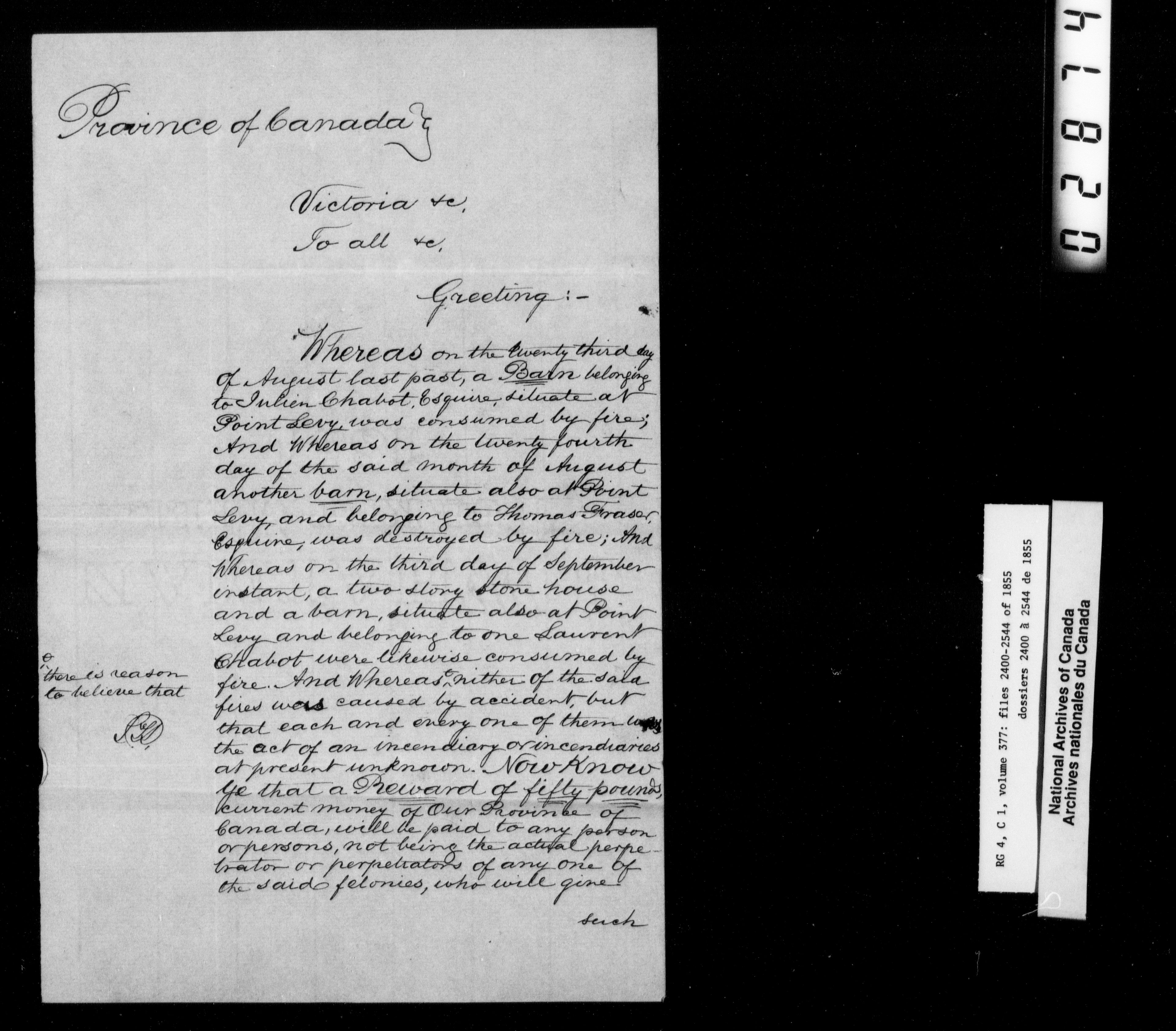 Canada East : Provincial Secretary numbered correspondence files, 1839-1867 - 2685