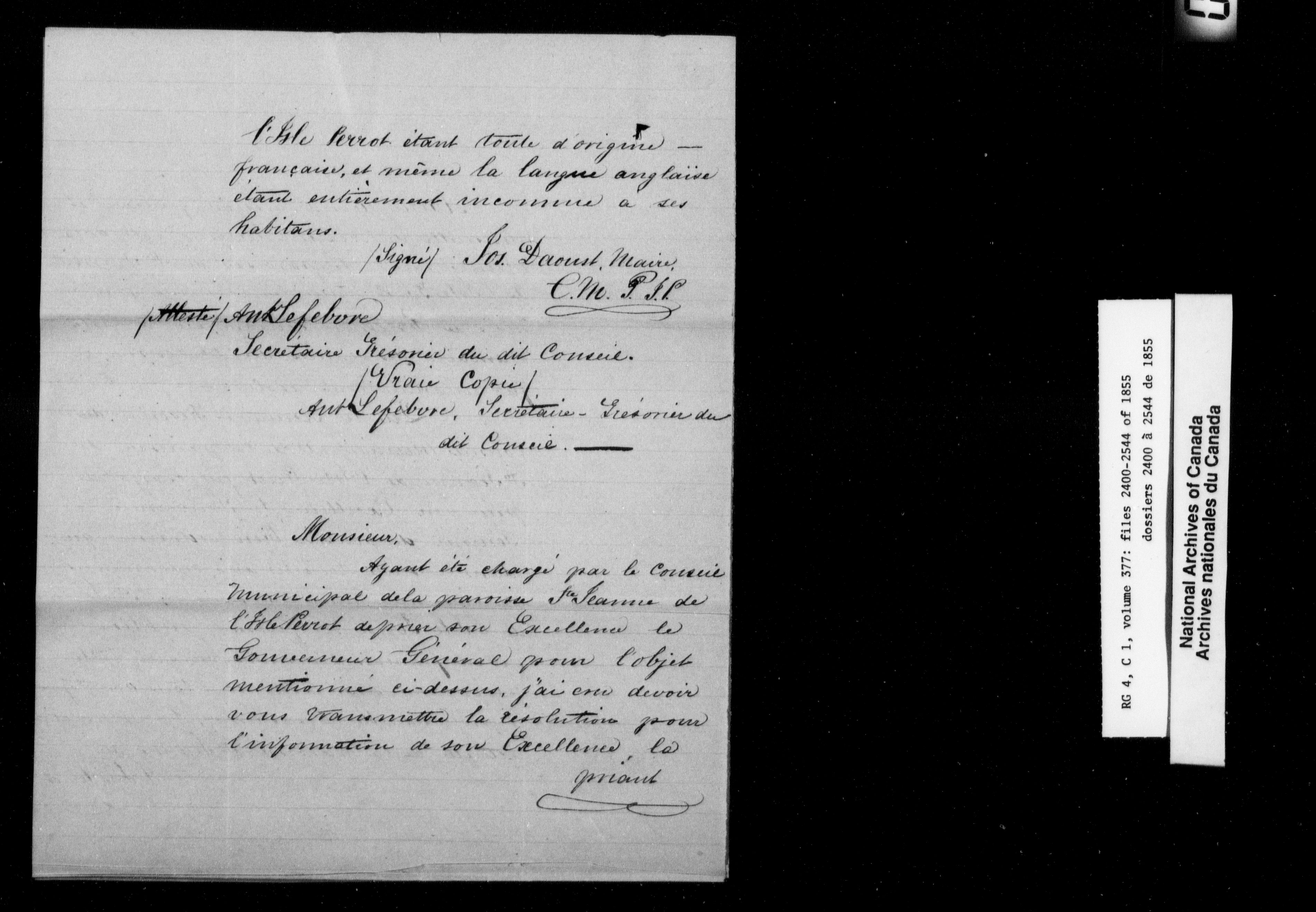 Canada East : Provincial Secretary numbered correspondence files, 1839-1867 - 2685