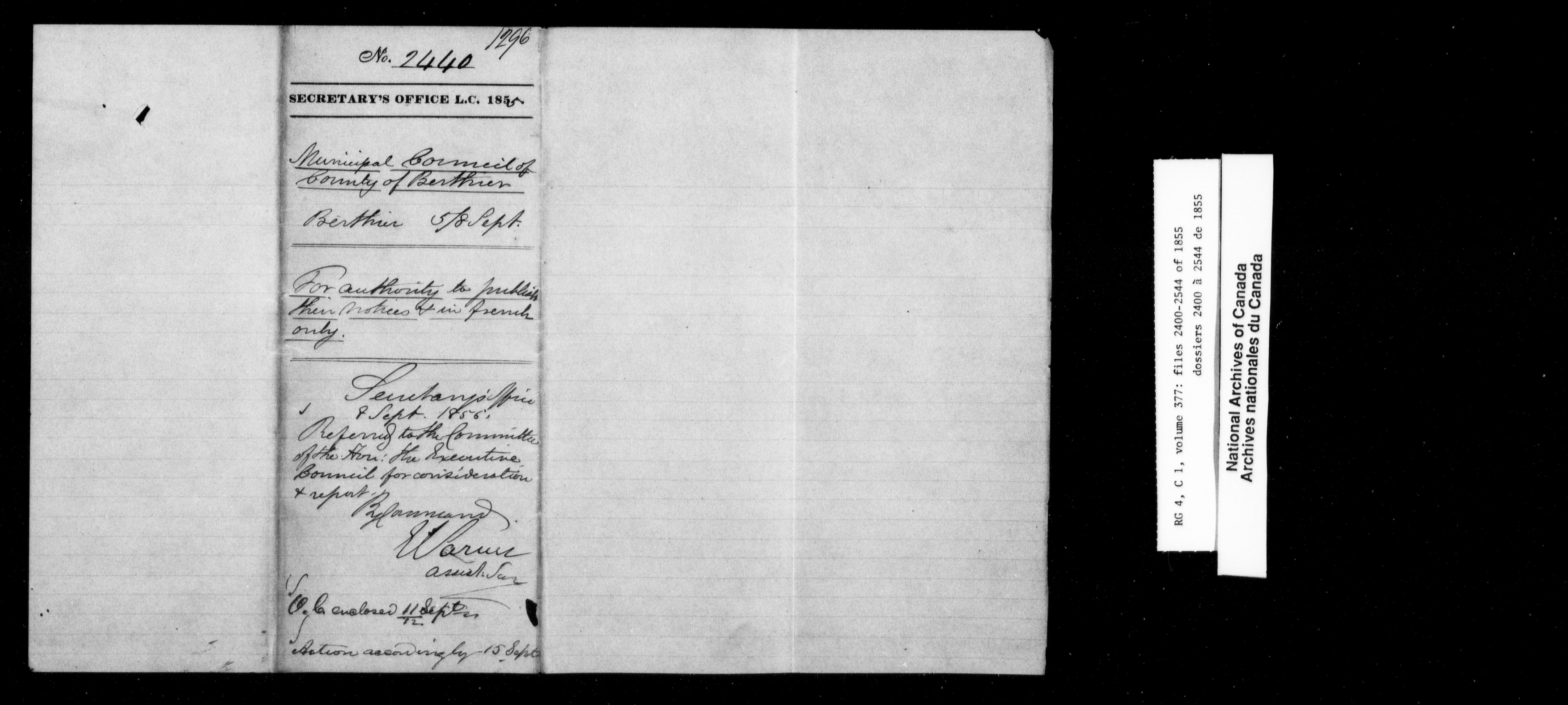 Canada East : Provincial Secretary numbered correspondence files, 1839-1867 - 2685