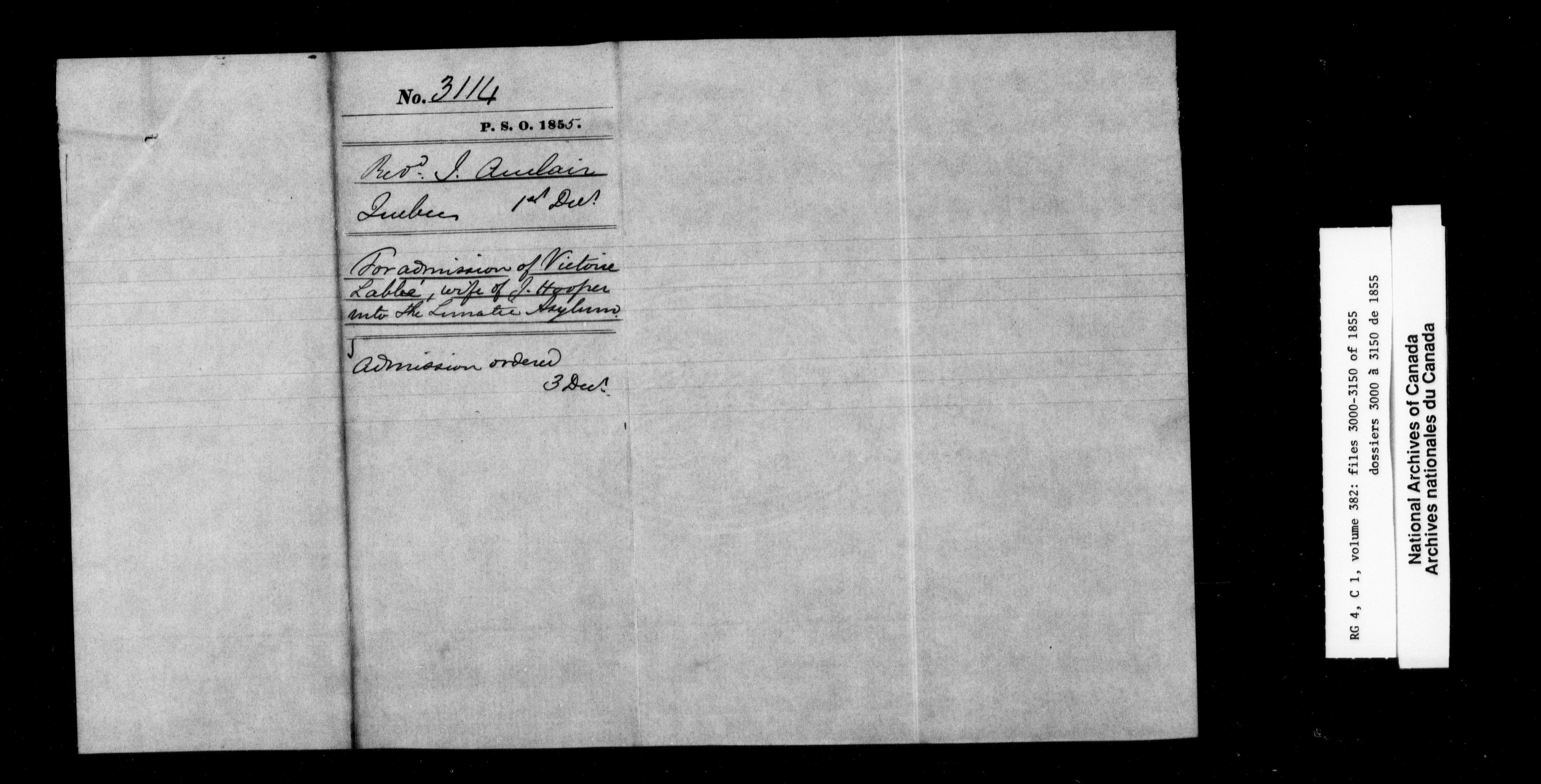 Canada East : Provincial Secretary numbered correspondence files, 1839-1867 : H-2688