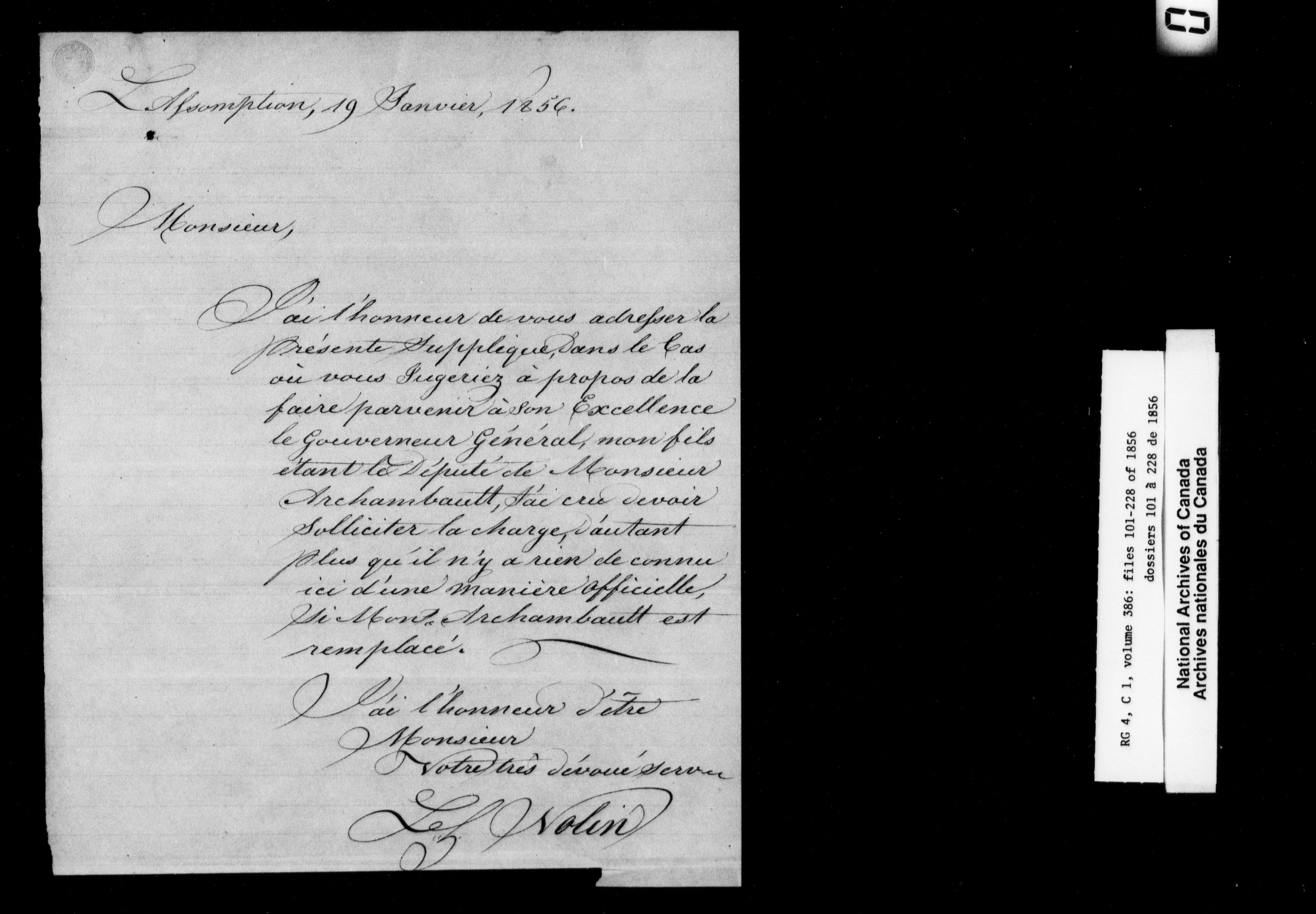 Canada East : Provincial Secretary numbered correspondence files, 1839-1867 - 2689