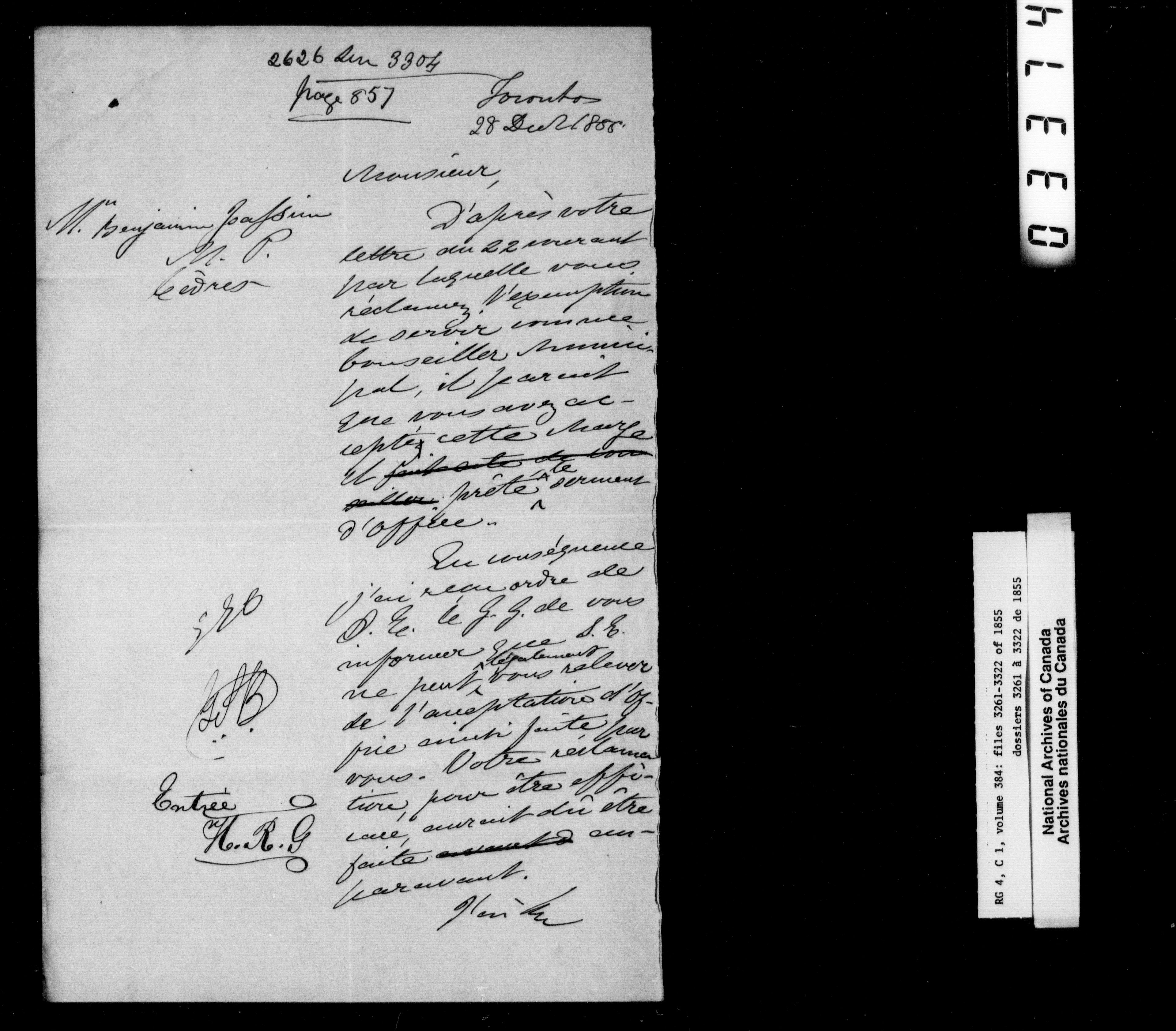 Canada East : Provincial Secretary numbered correspondence files, 1839-1867 - 2689