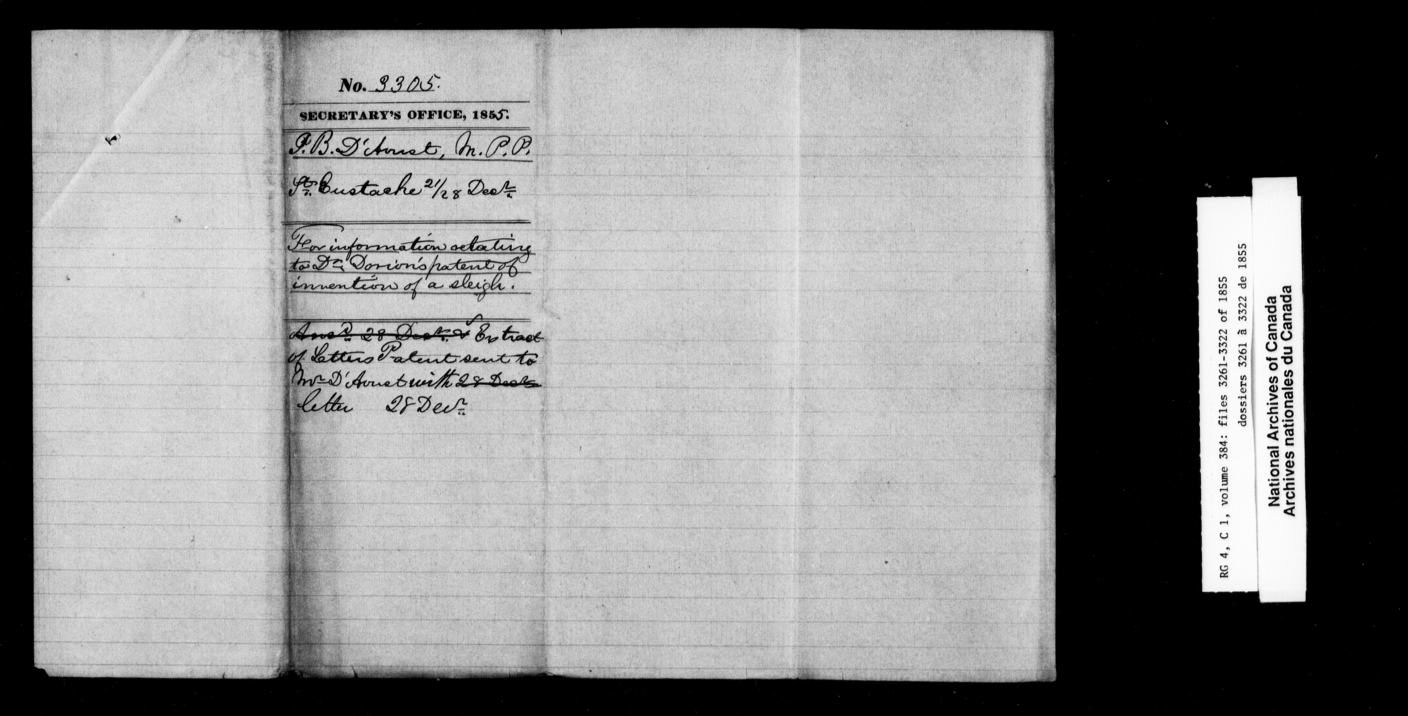 Canada East : Provincial Secretary numbered correspondence files, 1839-1867 - 2689