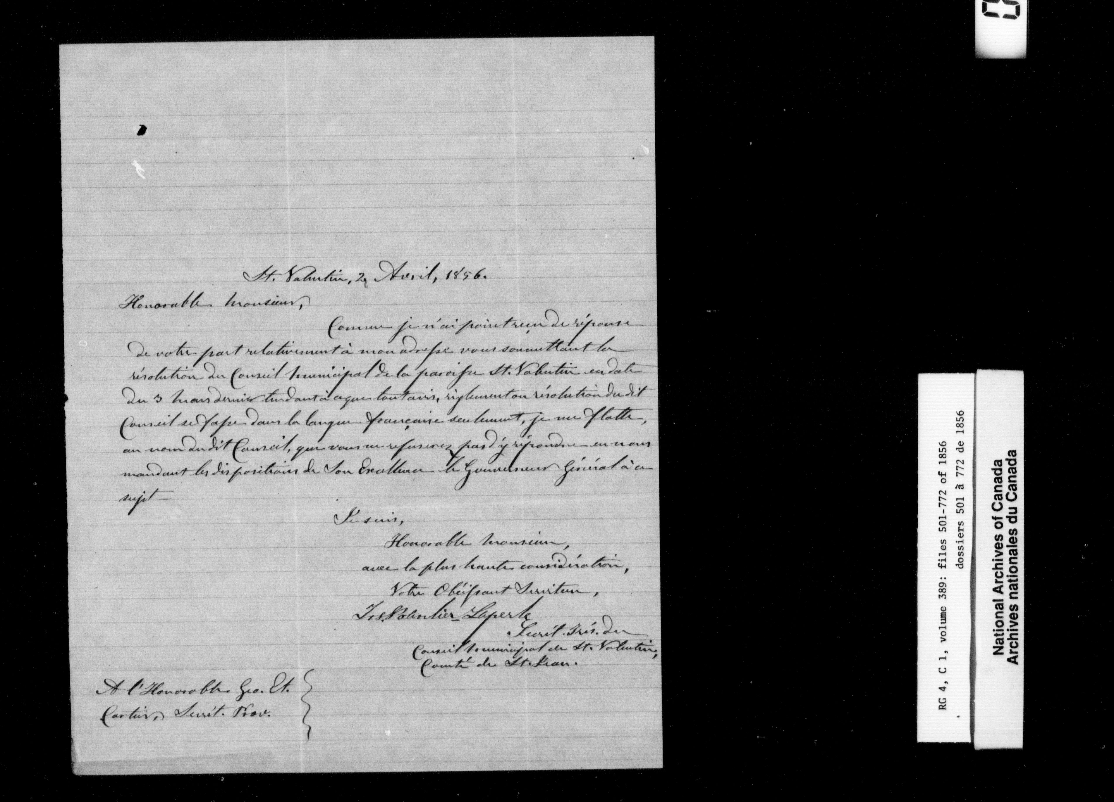 Canada East : Provincial Secretary numbered correspondence files, 1839-1867 - 2692