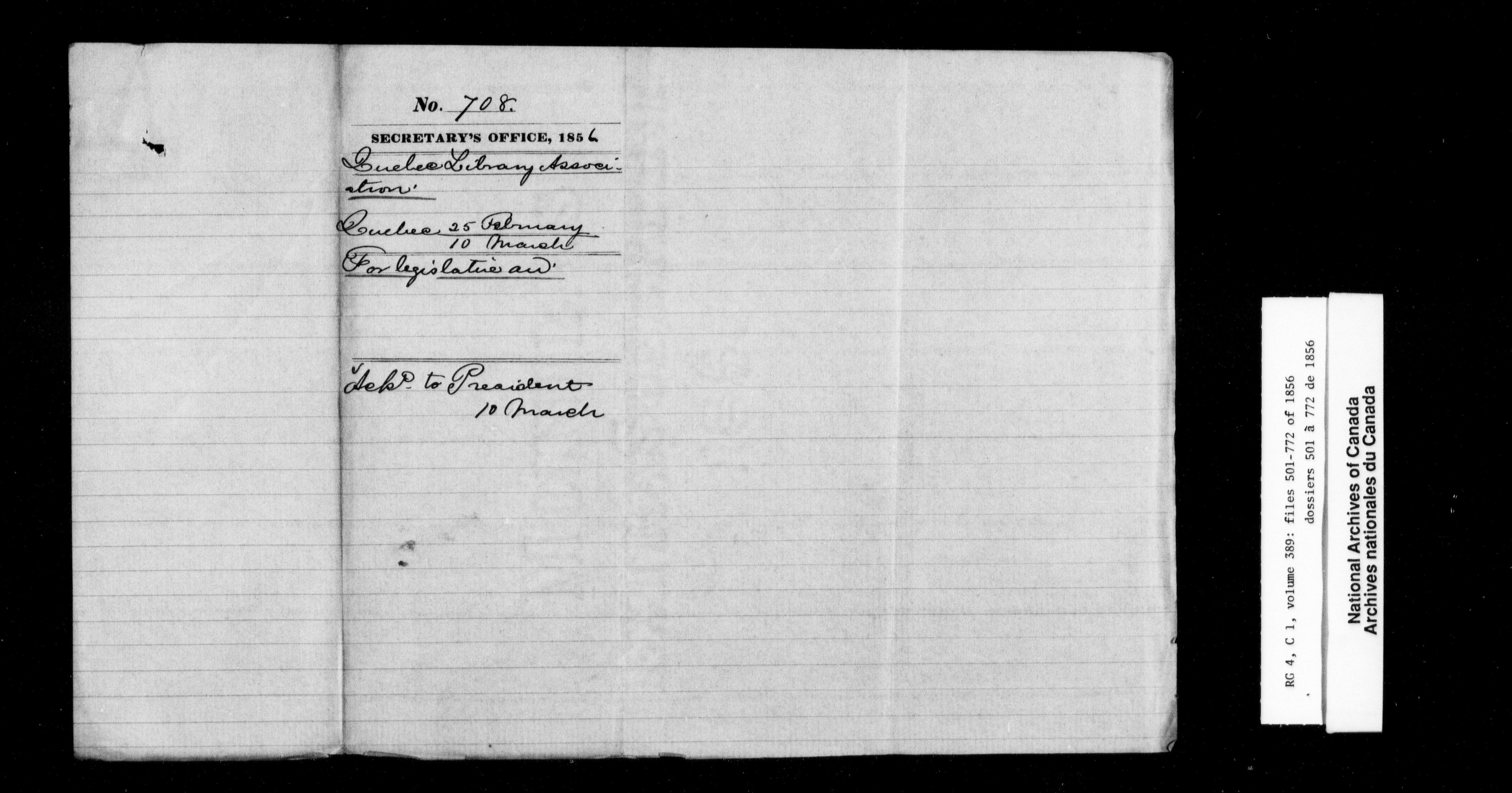 Canada East : Provincial Secretary numbered correspondence files, 1839-1867 - 2692