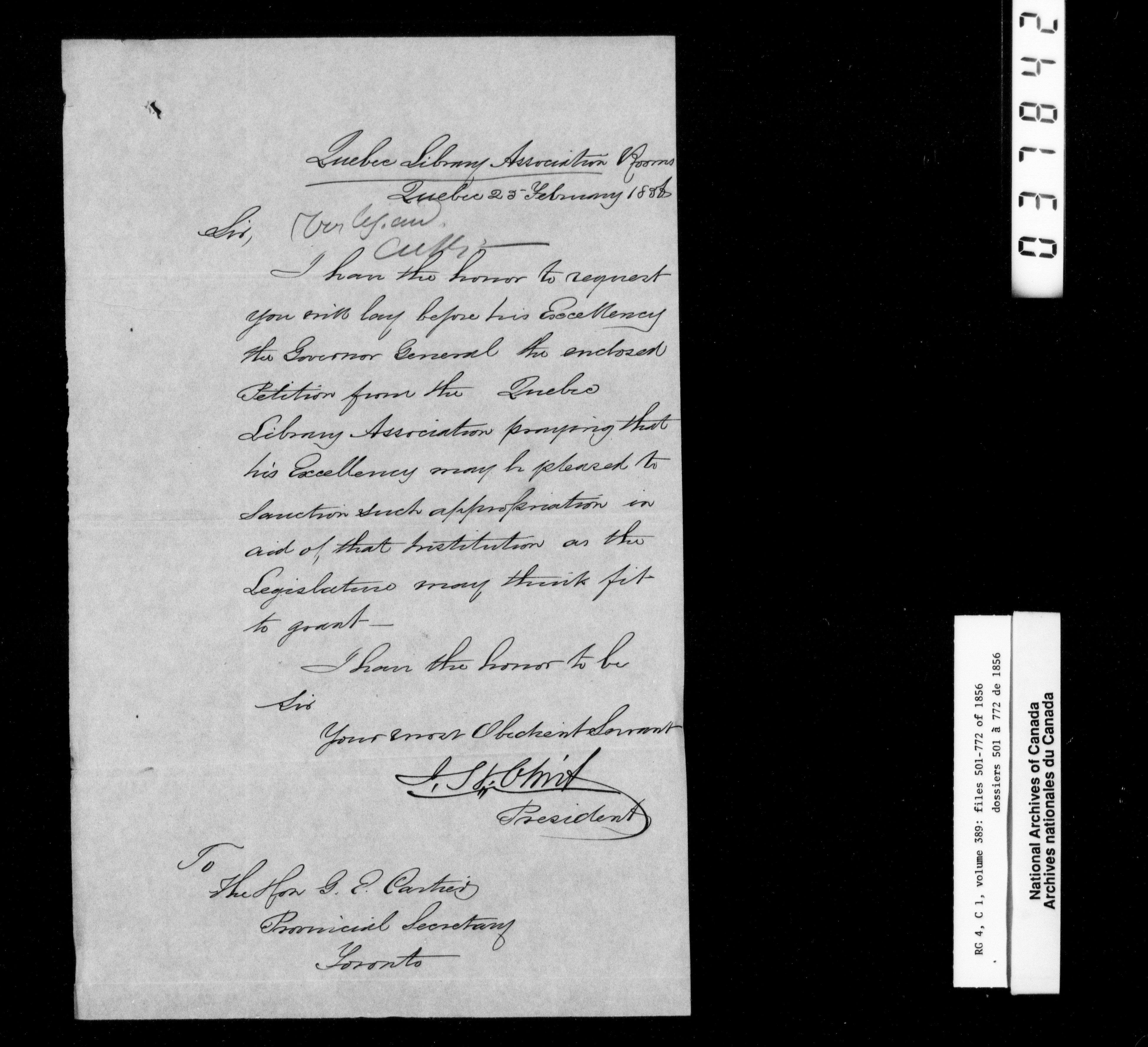 Canada East : Provincial Secretary numbered correspondence files, 1839-1867 - 2692