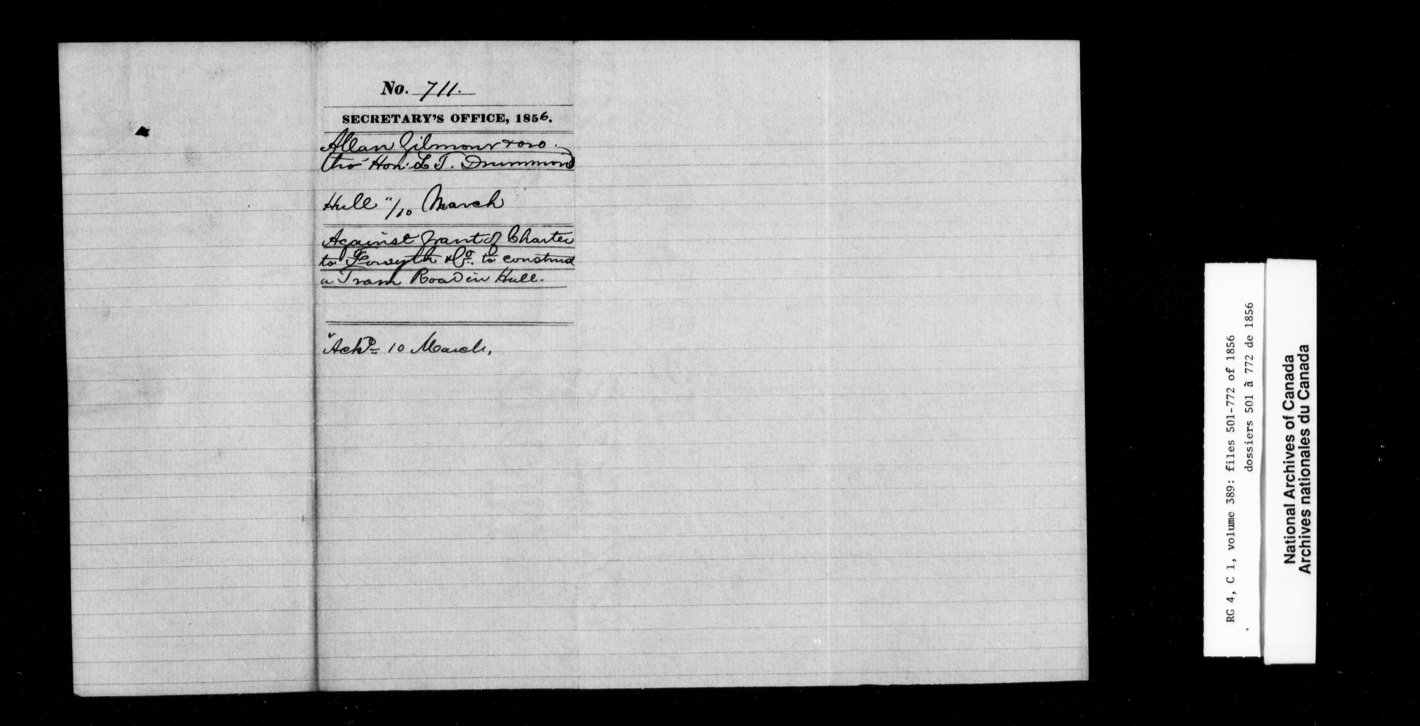 Canada East : Provincial Secretary numbered correspondence files, 1839-1867 - 2692