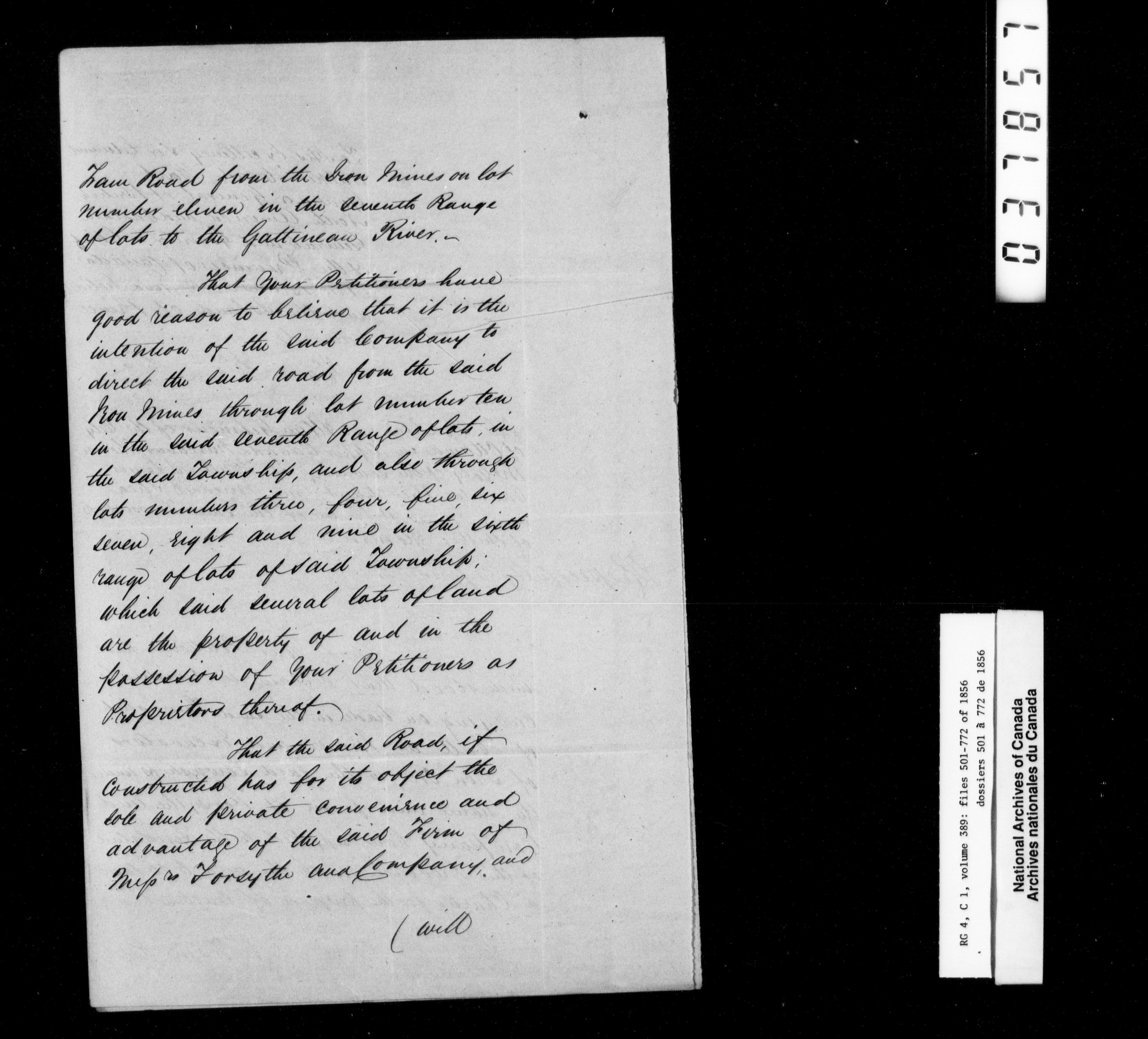Canada East : Provincial Secretary numbered correspondence files, 1839-1867 - 2692