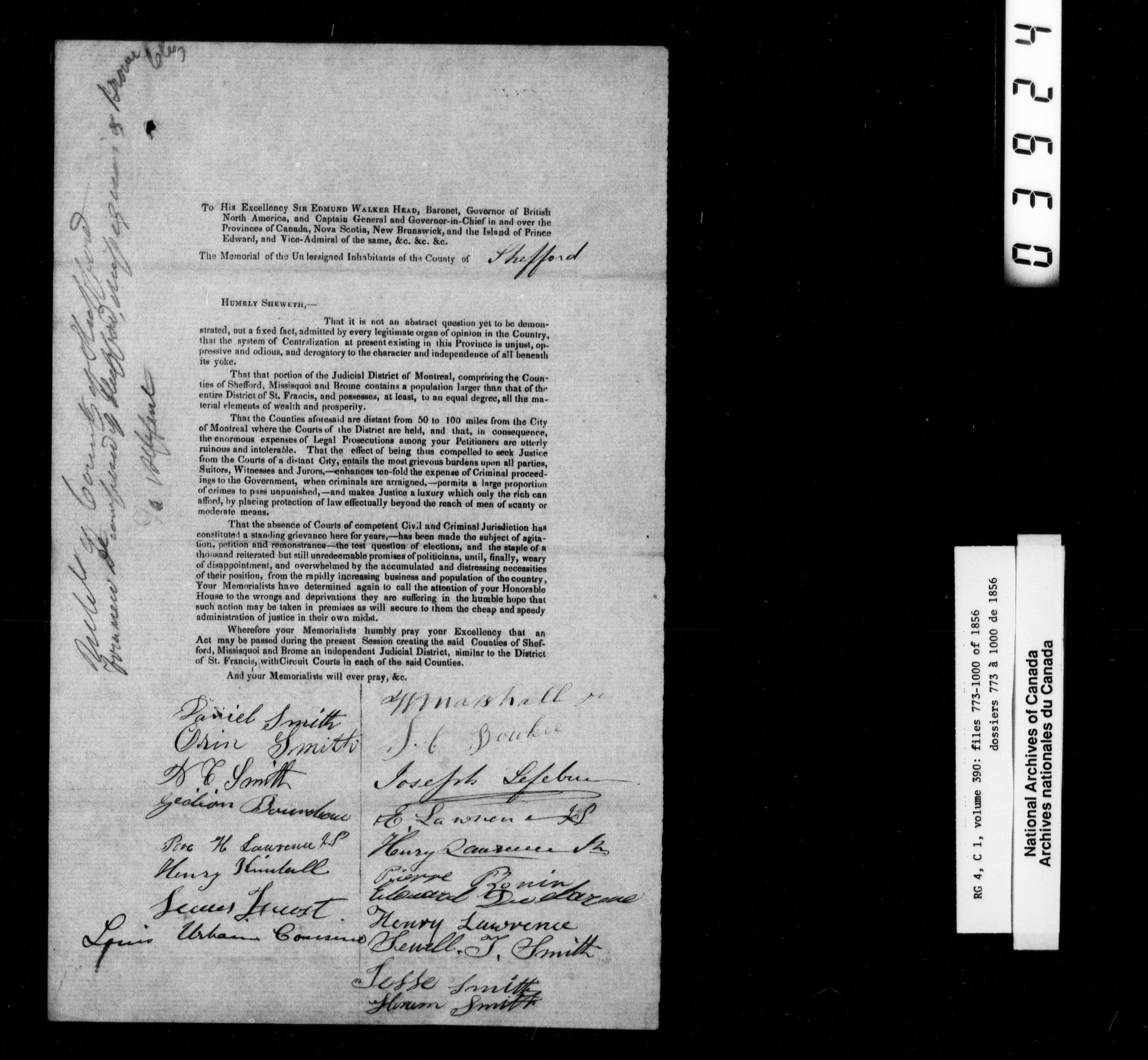 Canada East : Provincial Secretary numbered correspondence files, 1839-1867 - 2693