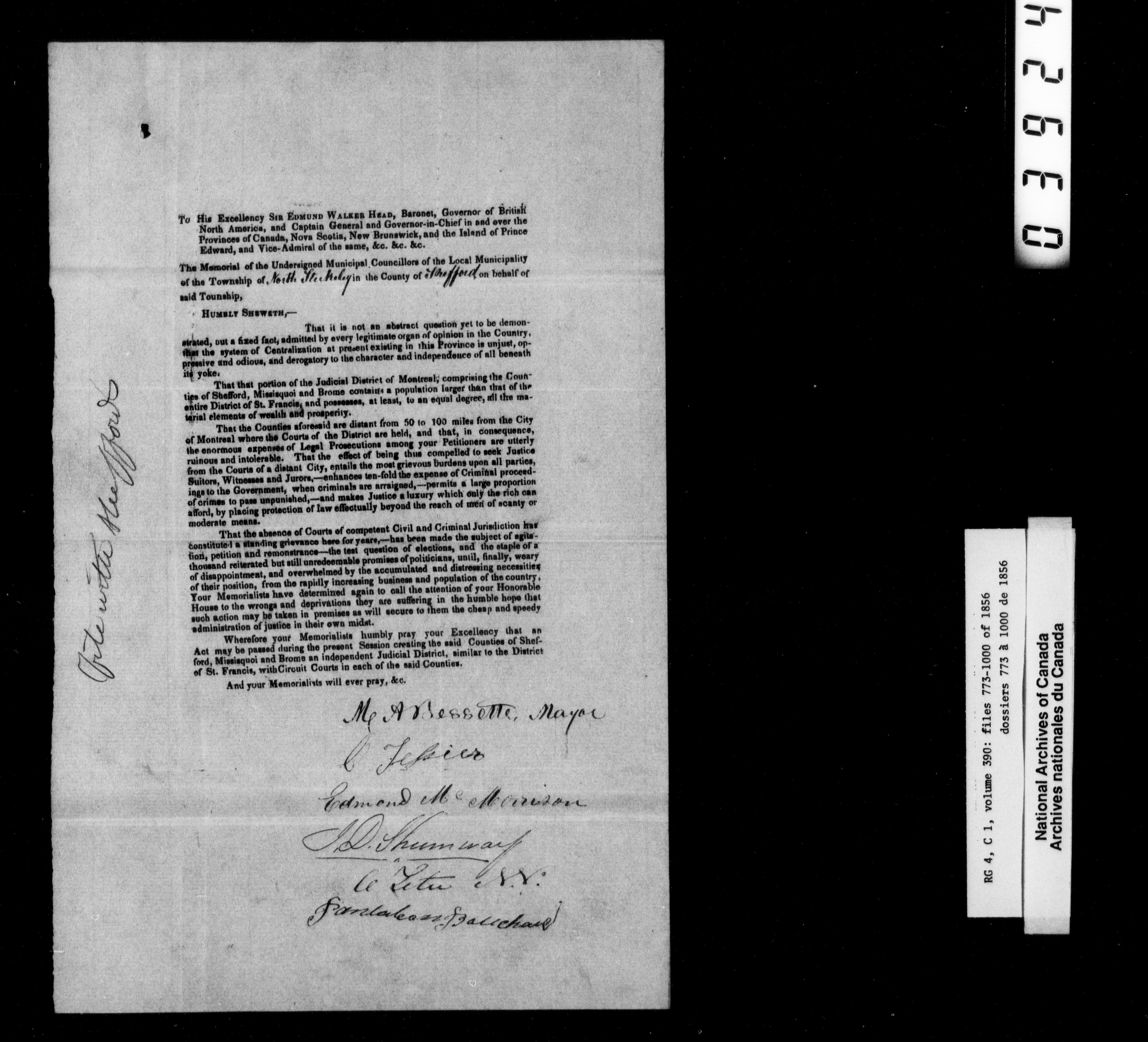 Canada East : Provincial Secretary numbered correspondence files, 1839-1867 - 2693