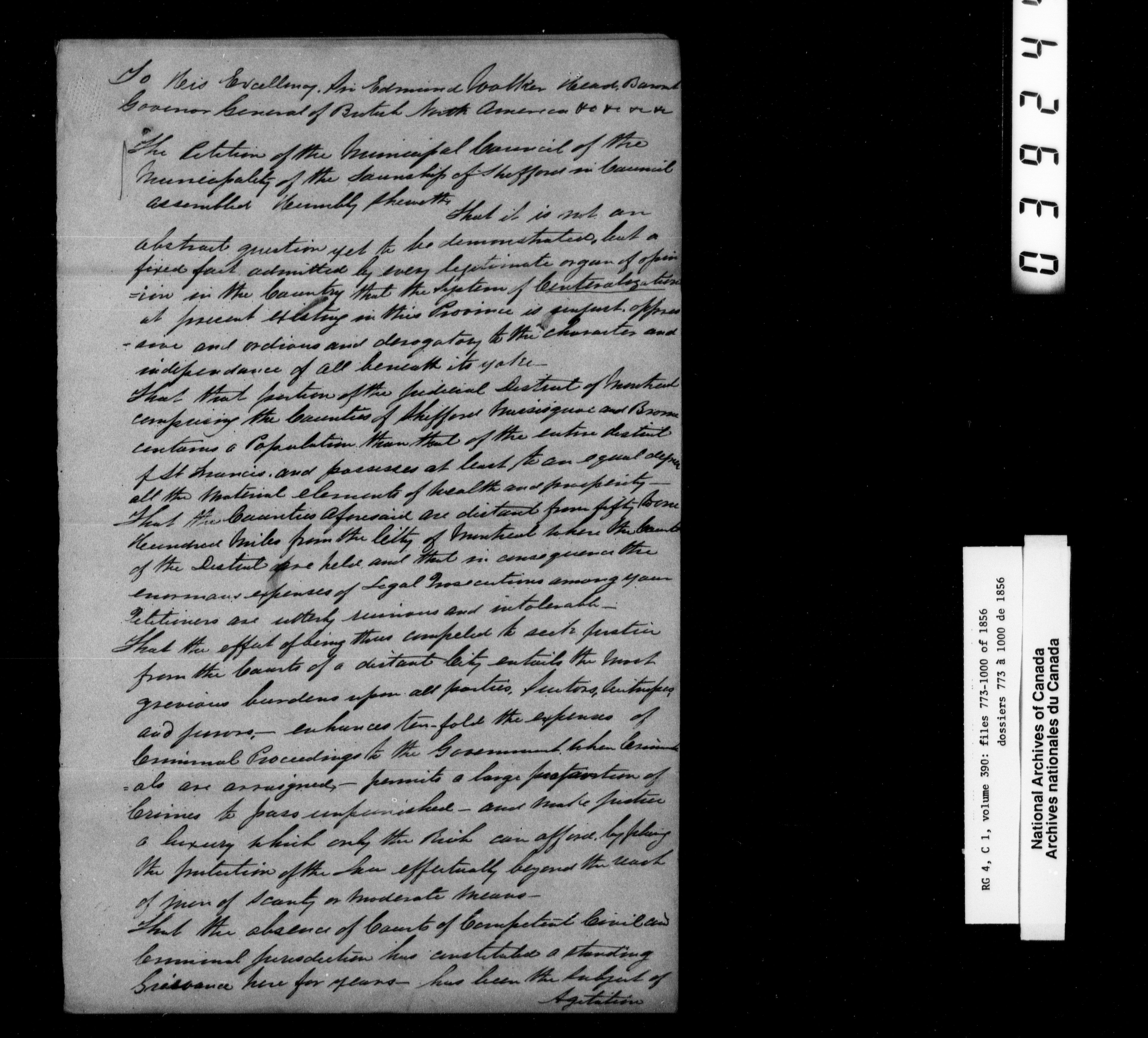 Canada East : Provincial Secretary numbered correspondence files, 1839-1867 - 2693