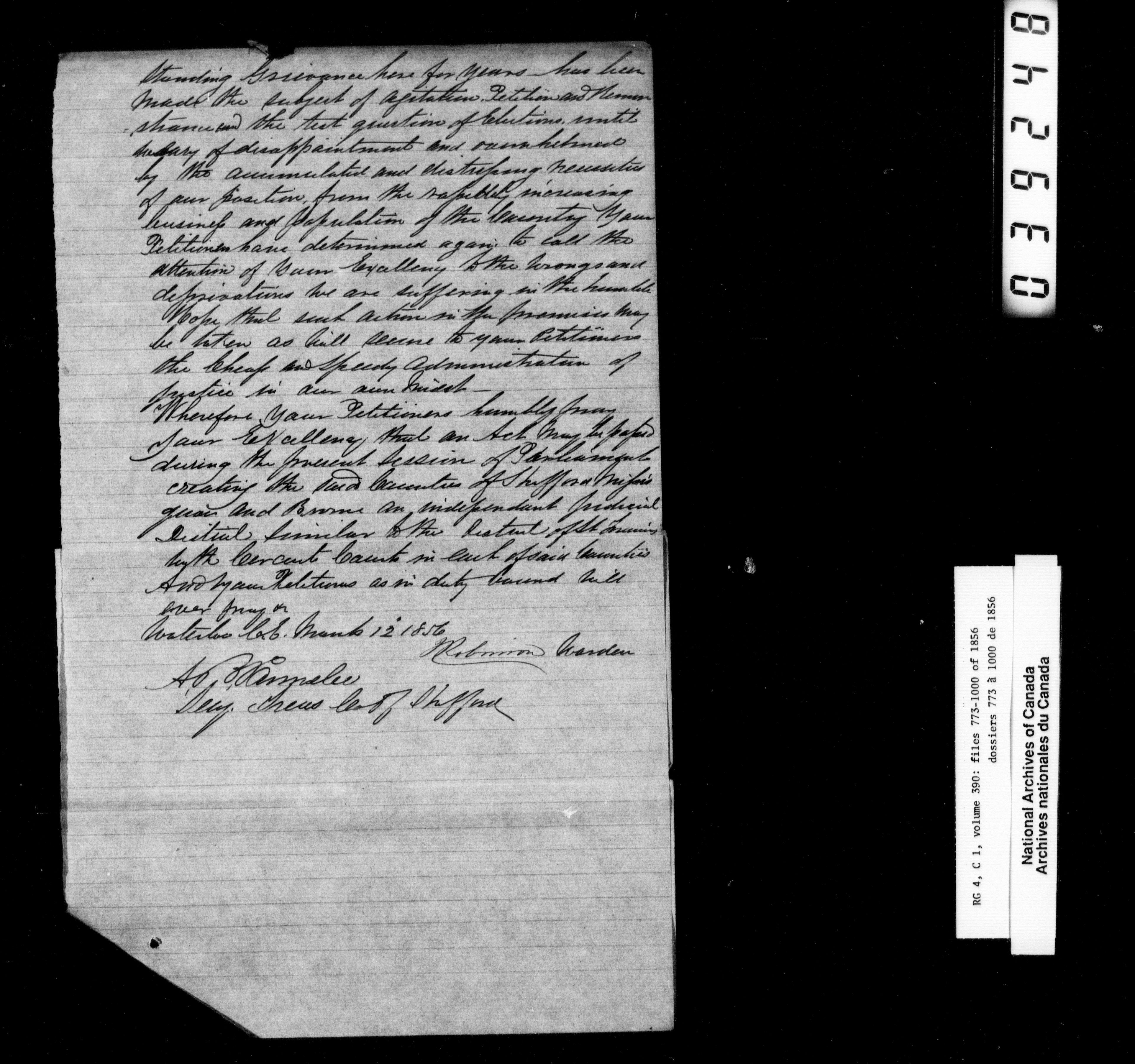 Canada East : Provincial Secretary numbered correspondence files, 1839-1867 - 2693