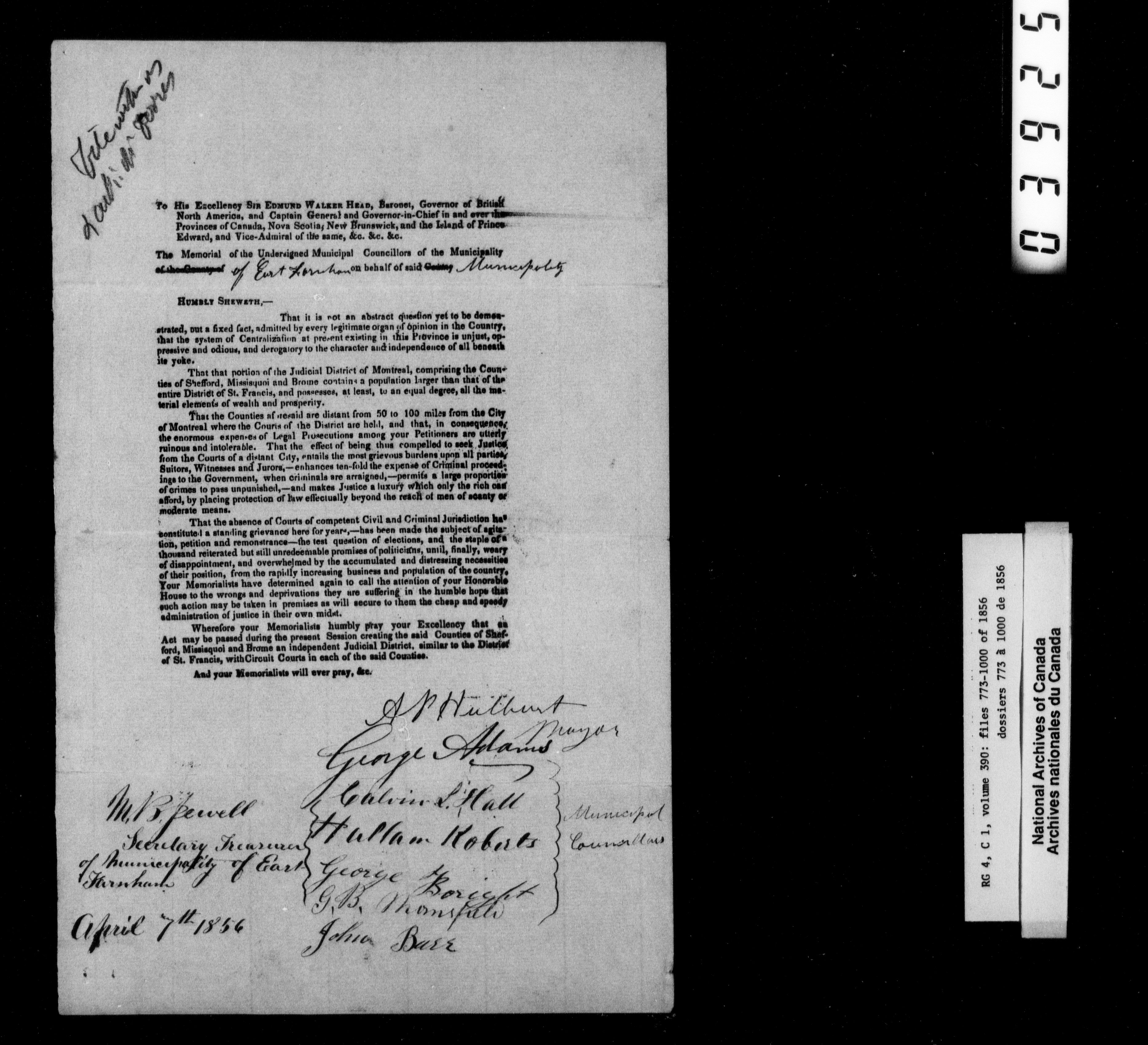 Canada East : Provincial Secretary numbered correspondence files, 1839-1867 : H-2693