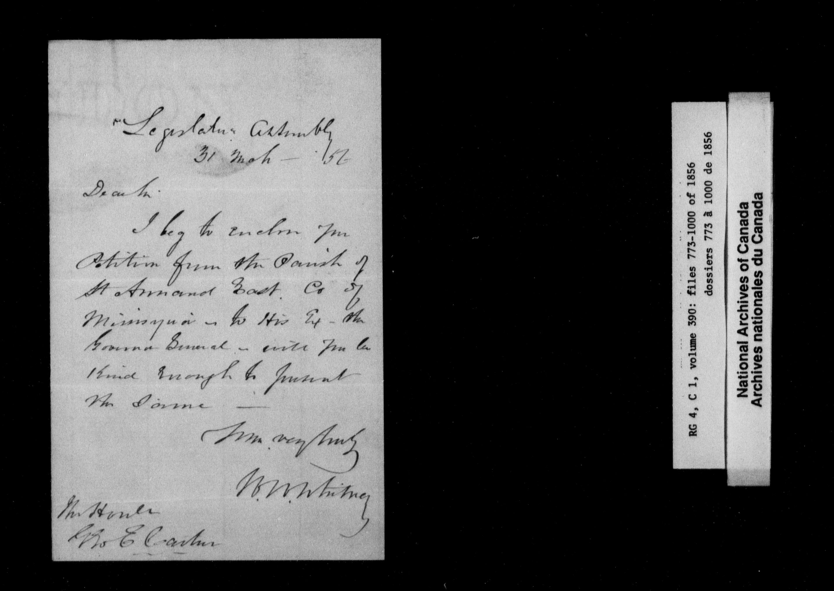 Canada East : Provincial Secretary numbered correspondence files, 1839-1867 : H-2693