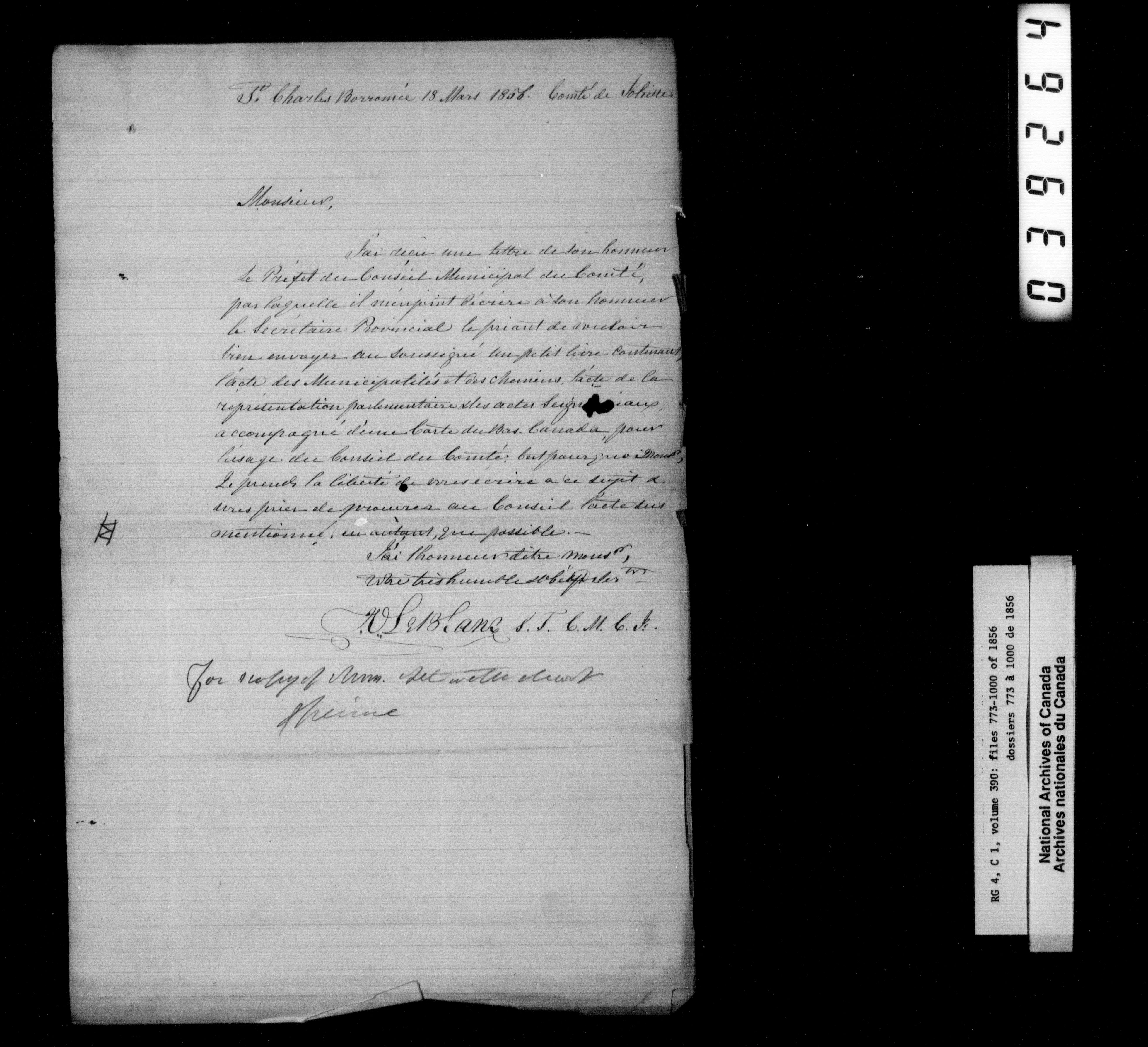 Canada East : Provincial Secretary numbered correspondence files, 1839-1867 - 2693