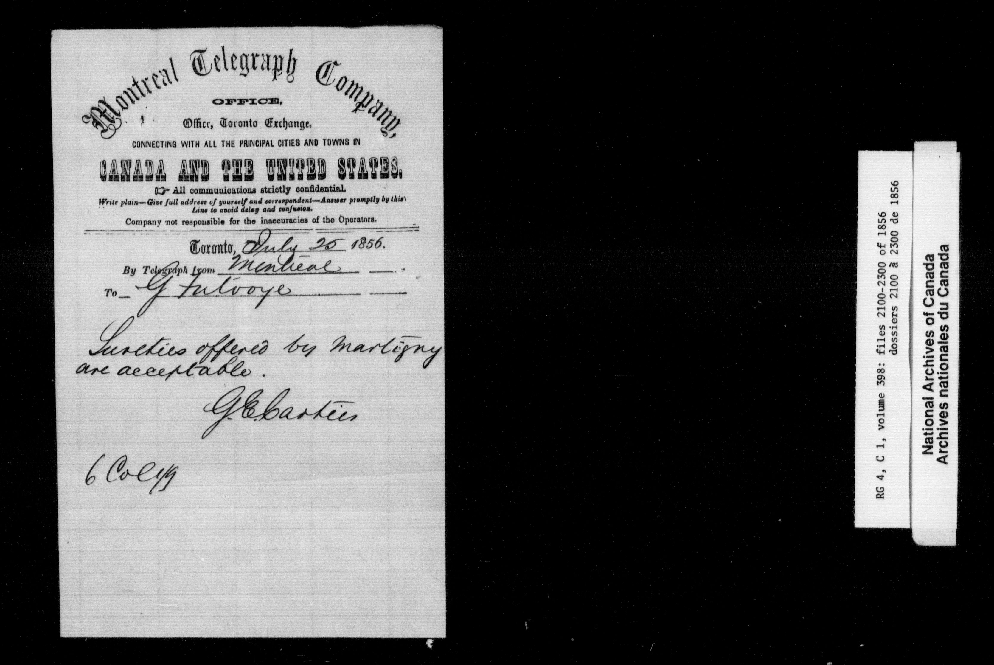 Canada East : Provincial Secretary numbered correspondence files, 1839-1867 - 2697
