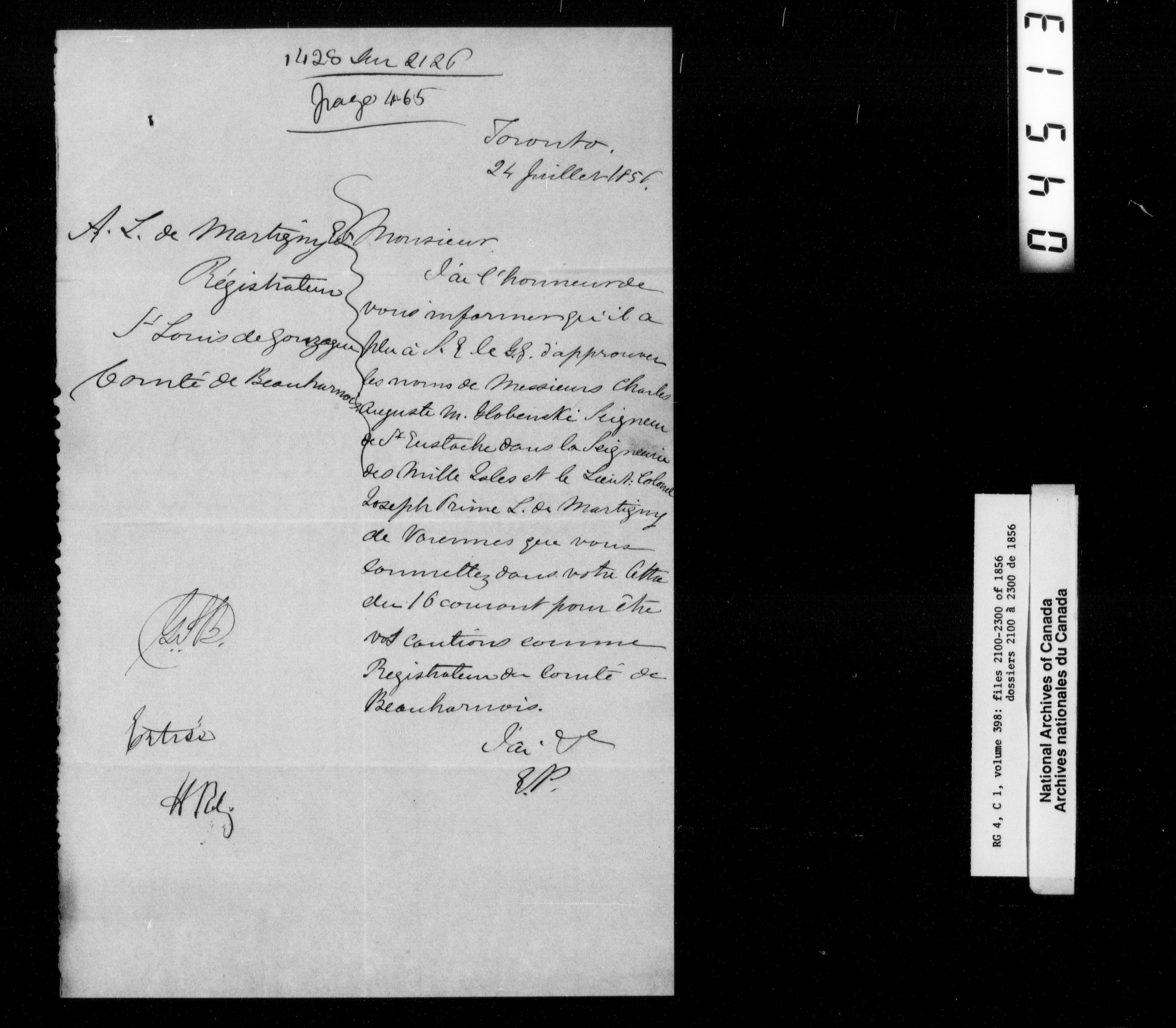 Canada East : Provincial Secretary numbered correspondence files, 1839-1867 - 2697