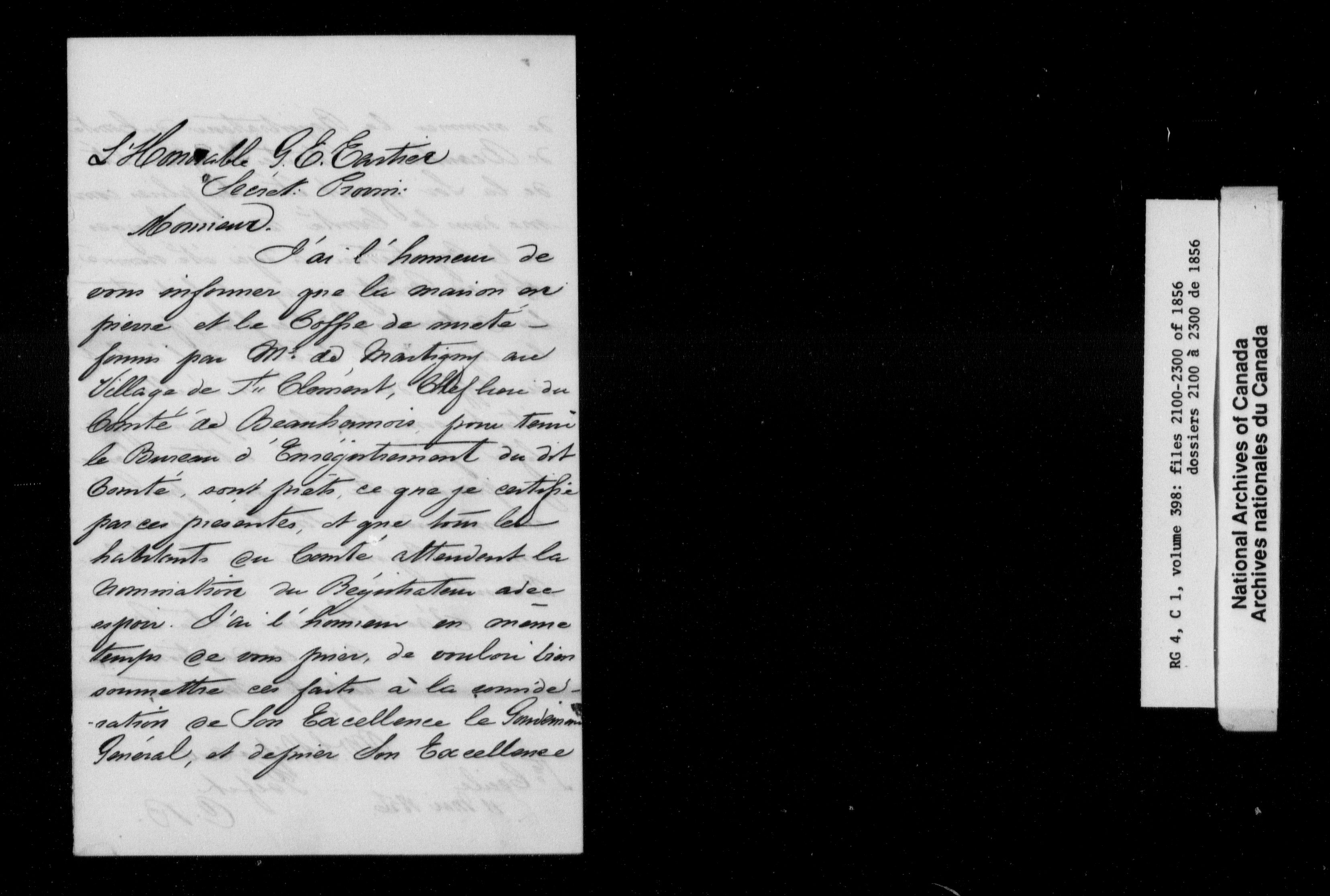 Canada East : Provincial Secretary numbered correspondence files, 1839-1867 - 2697
