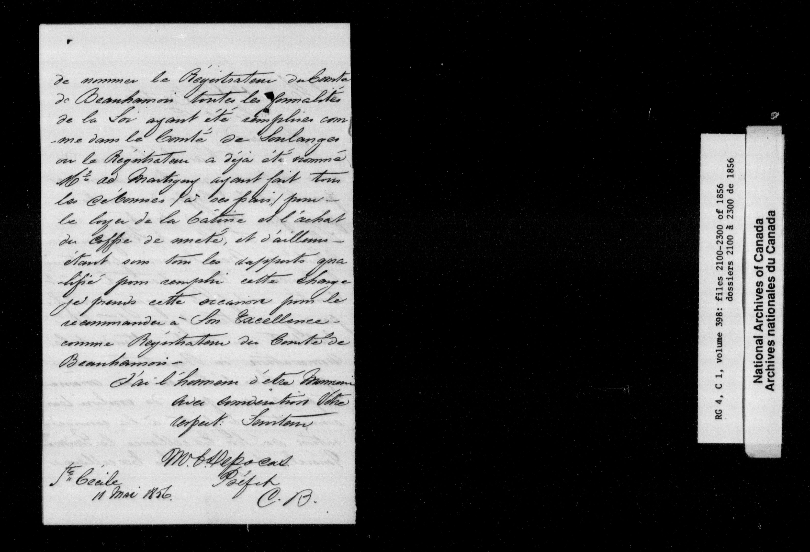 Canada East : Provincial Secretary numbered correspondence files, 1839-1867 - 2697