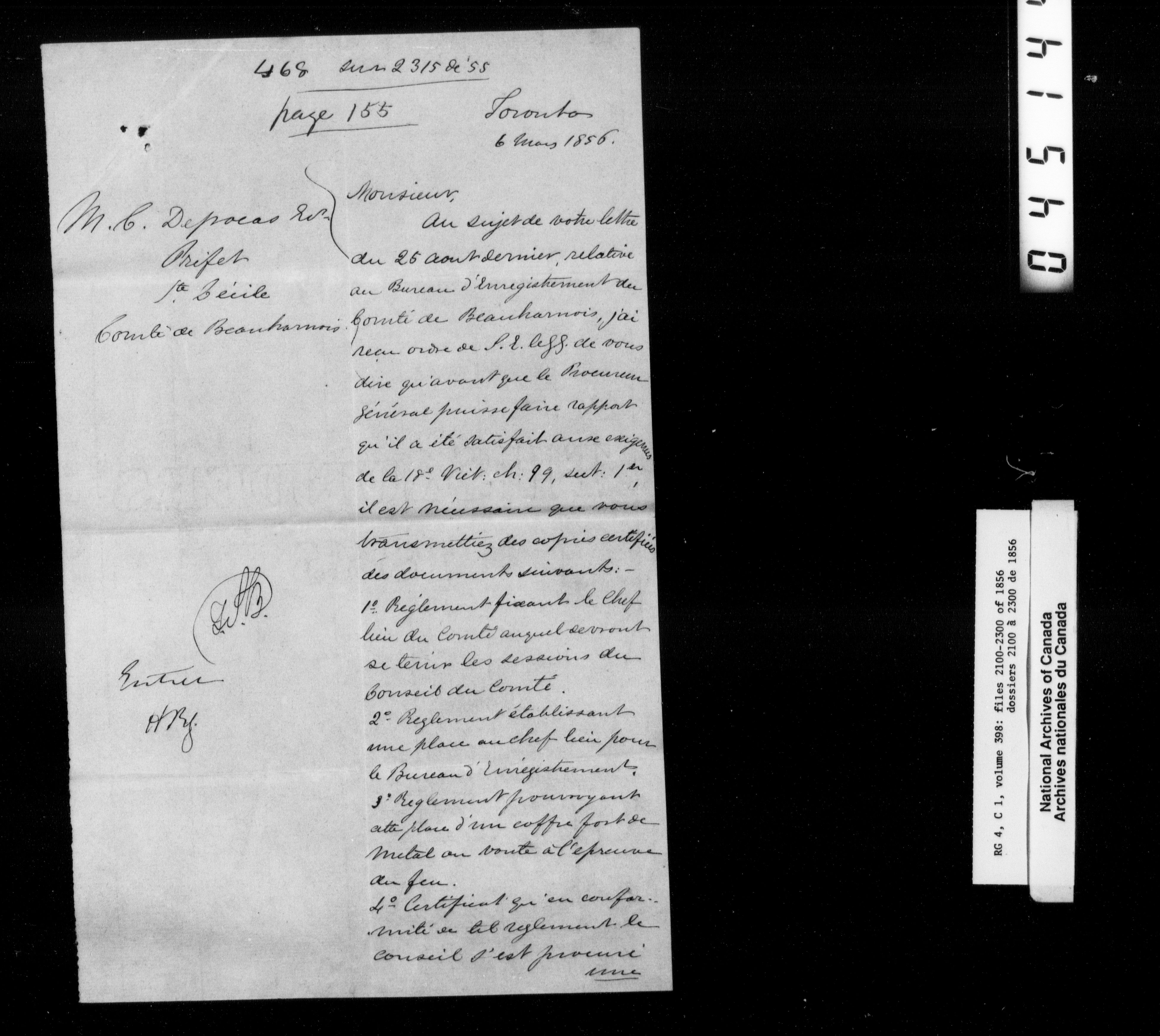 Canada East : Provincial Secretary numbered correspondence files, 1839-1867 - 2697