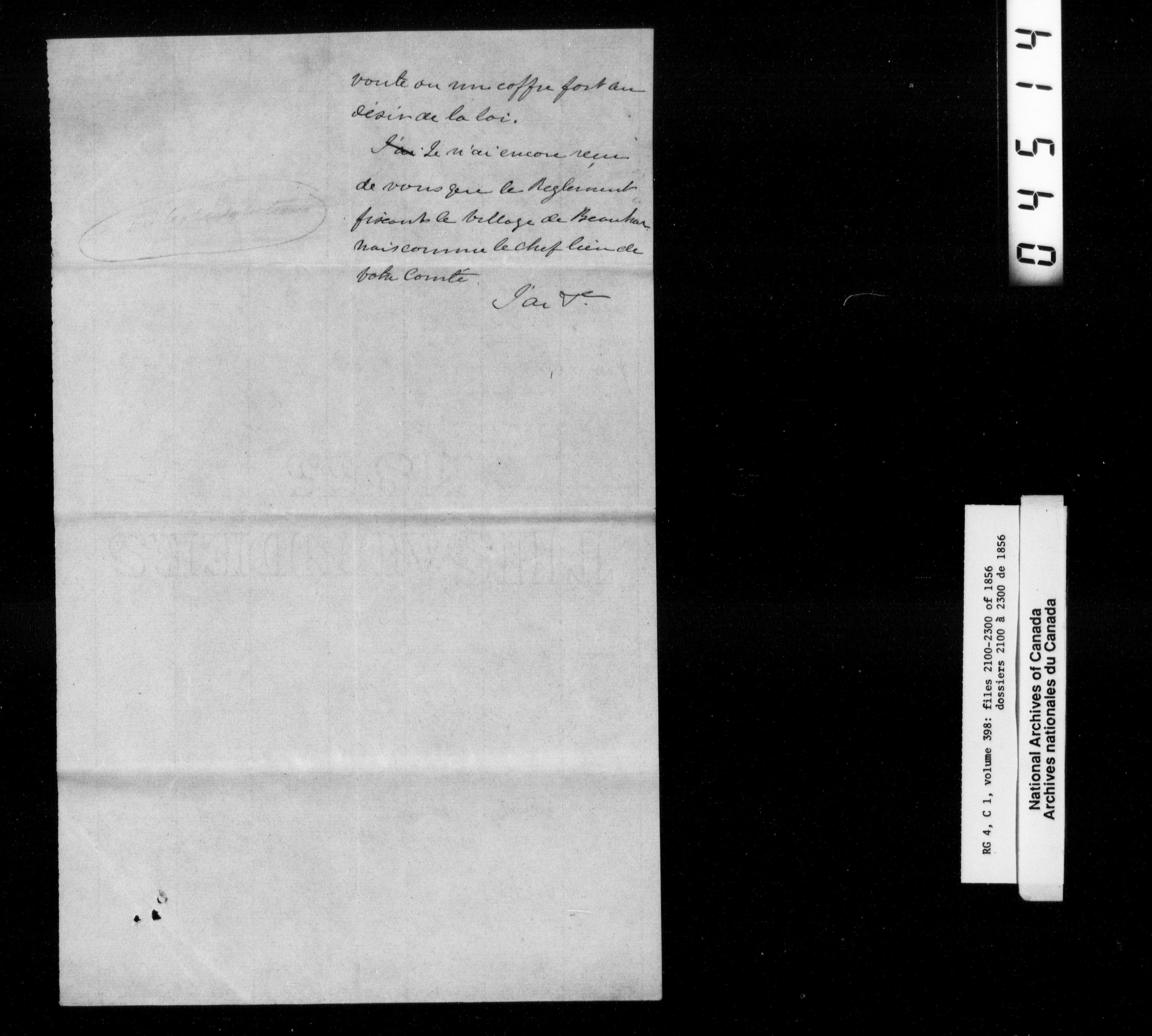 Canada East : Provincial Secretary numbered correspondence files, 1839-1867 - 2697