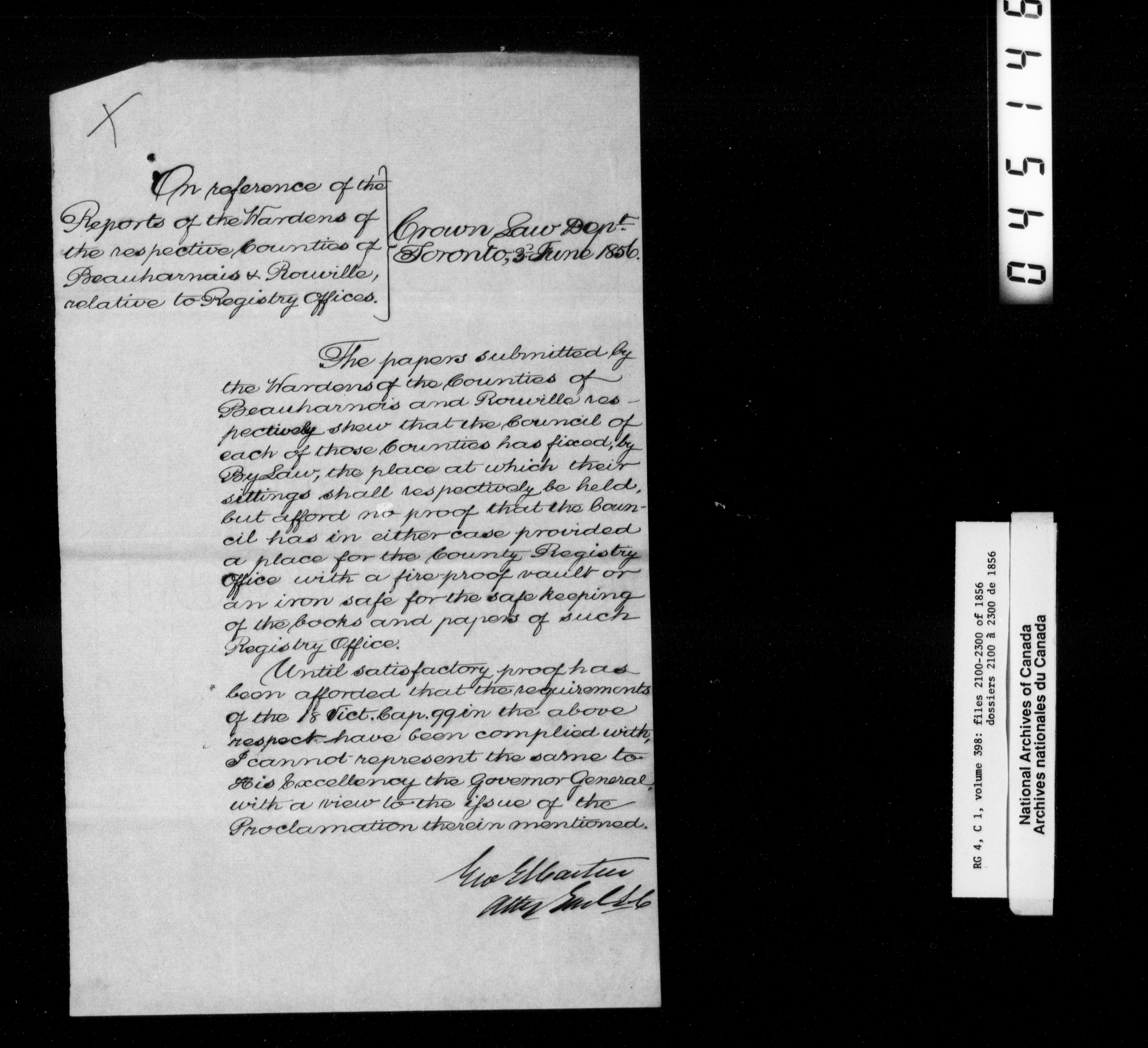 Canada East : Provincial Secretary numbered correspondence files, 1839-1867 - 2697