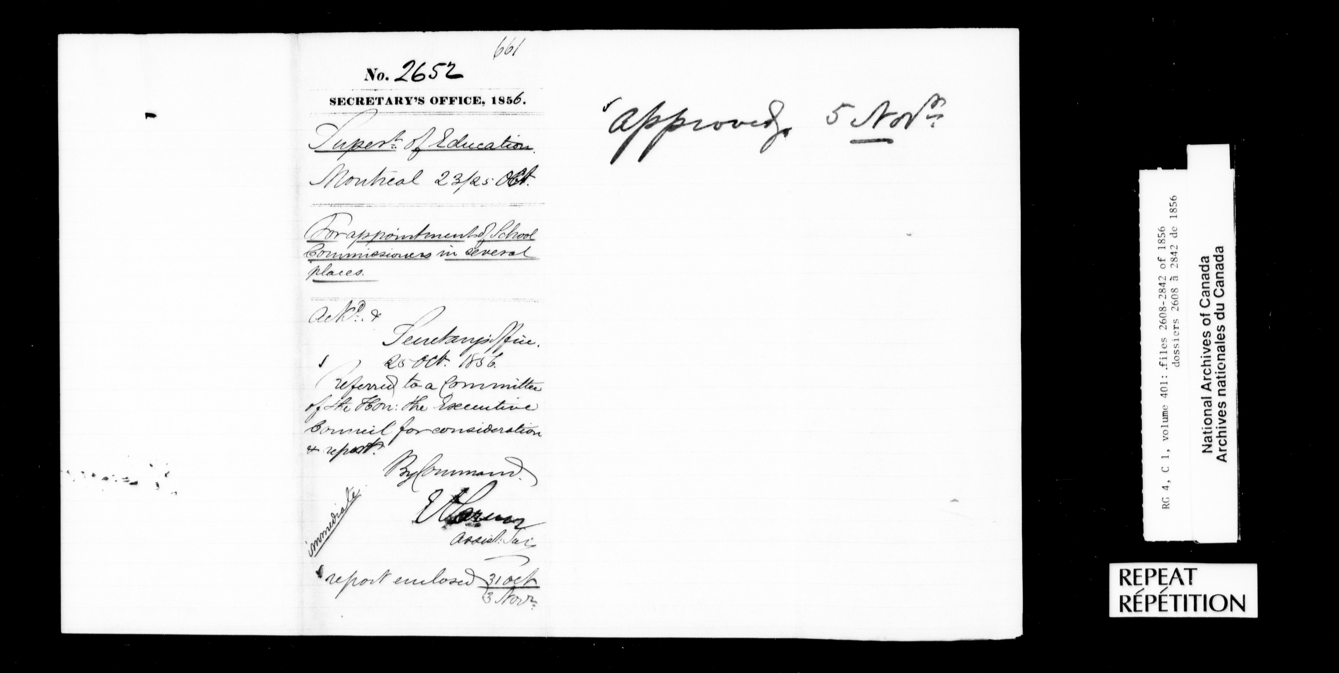 Canada East : Provincial Secretary numbered correspondence files, 1839-1867 - 2699