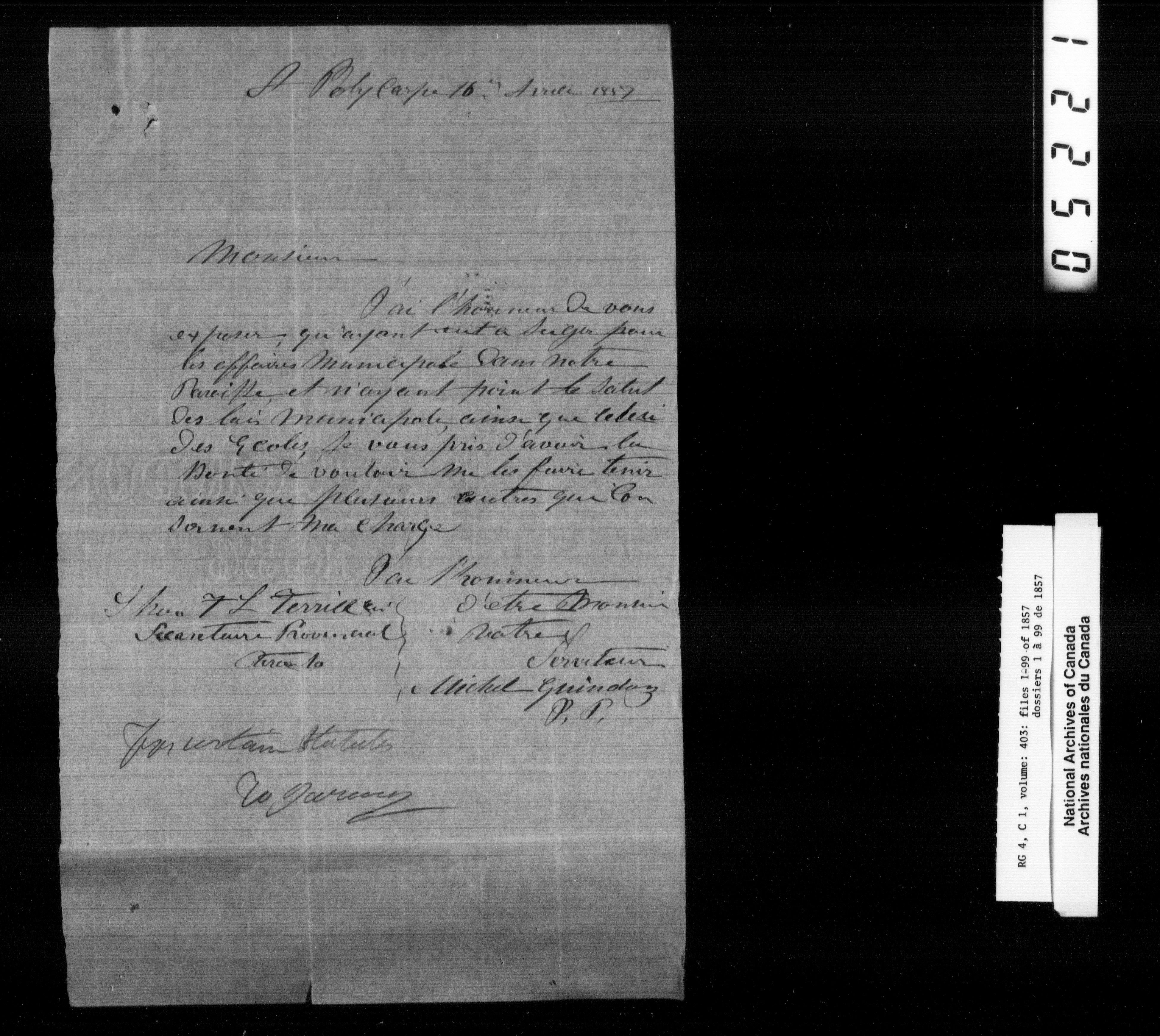 Canada East : Provincial Secretary numbered correspondence files, 1839-1867 - 2701