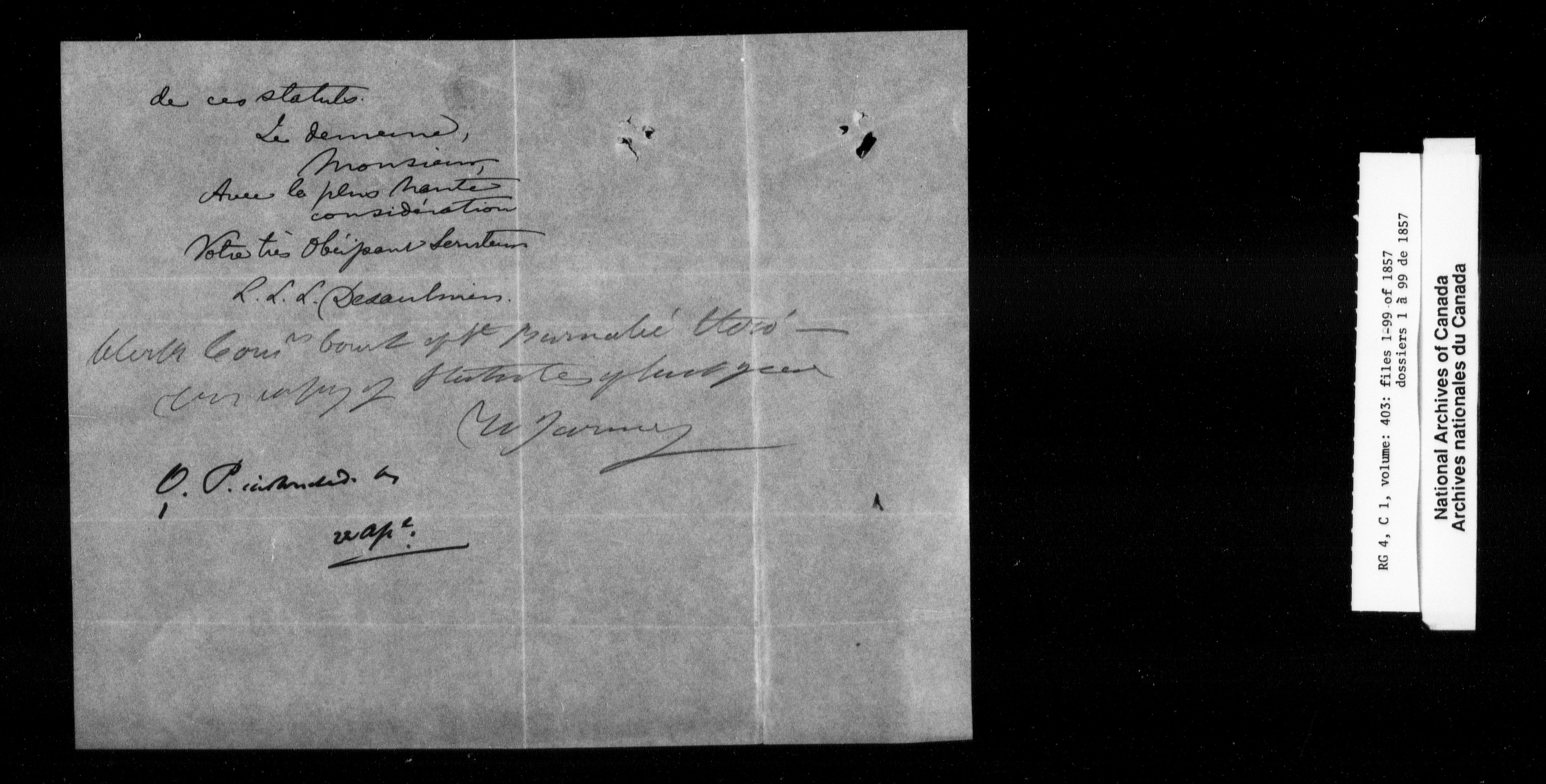 Canada East : Provincial Secretary numbered correspondence files, 1839-1867 - 2701