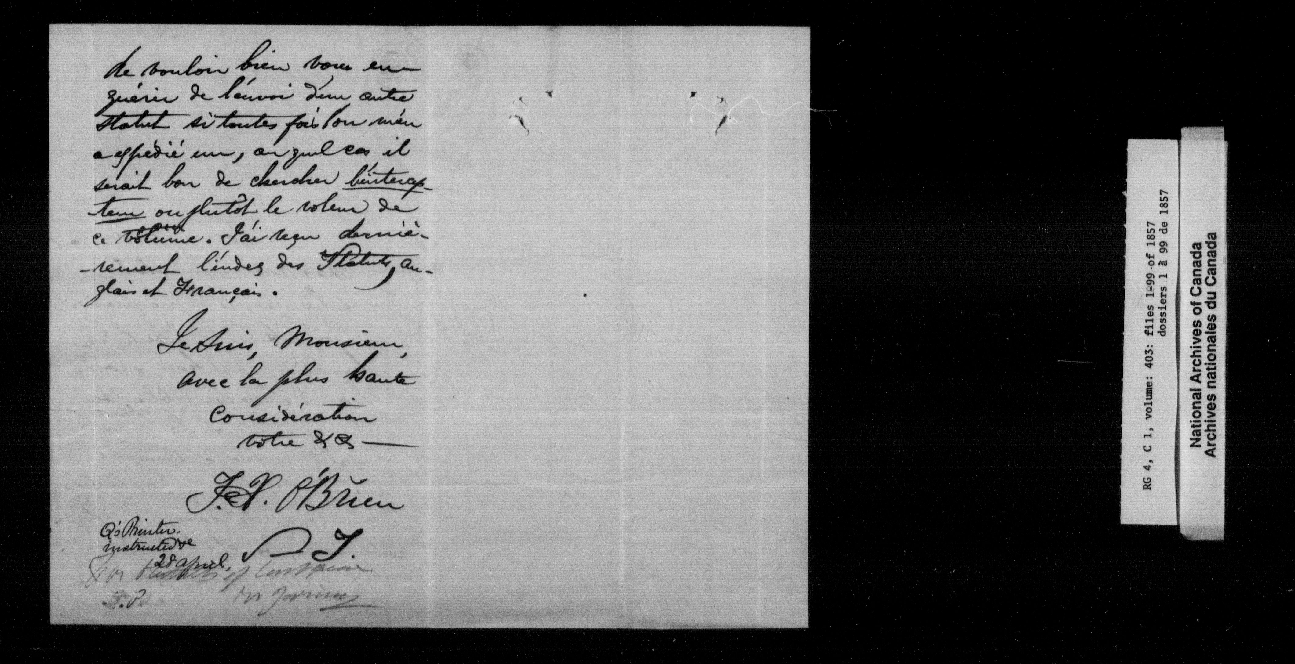 Canada East : Provincial Secretary numbered correspondence files, 1839-1867 - 2701
