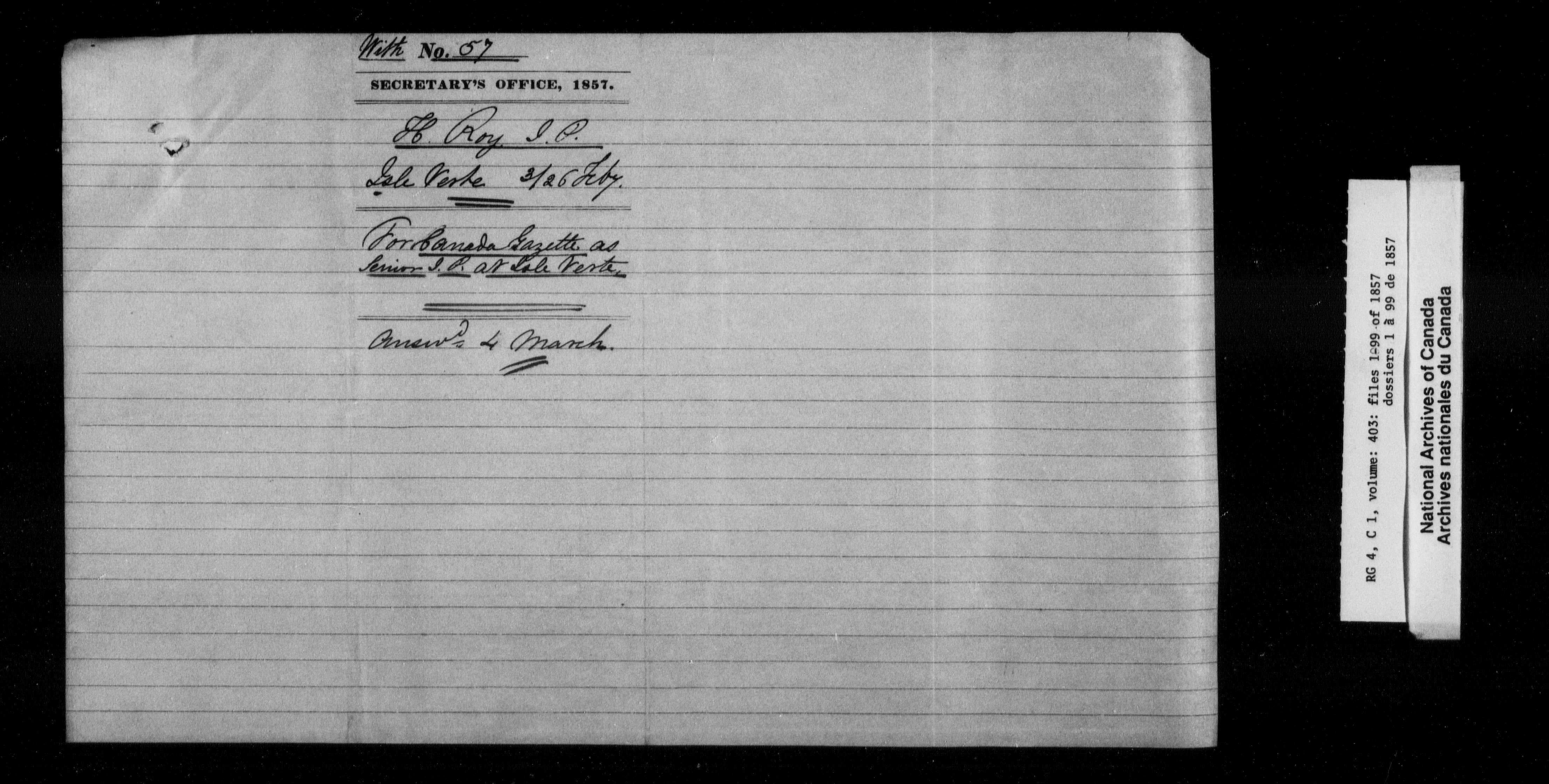 Canada East : Provincial Secretary numbered correspondence files, 1839-1867 : H-2701