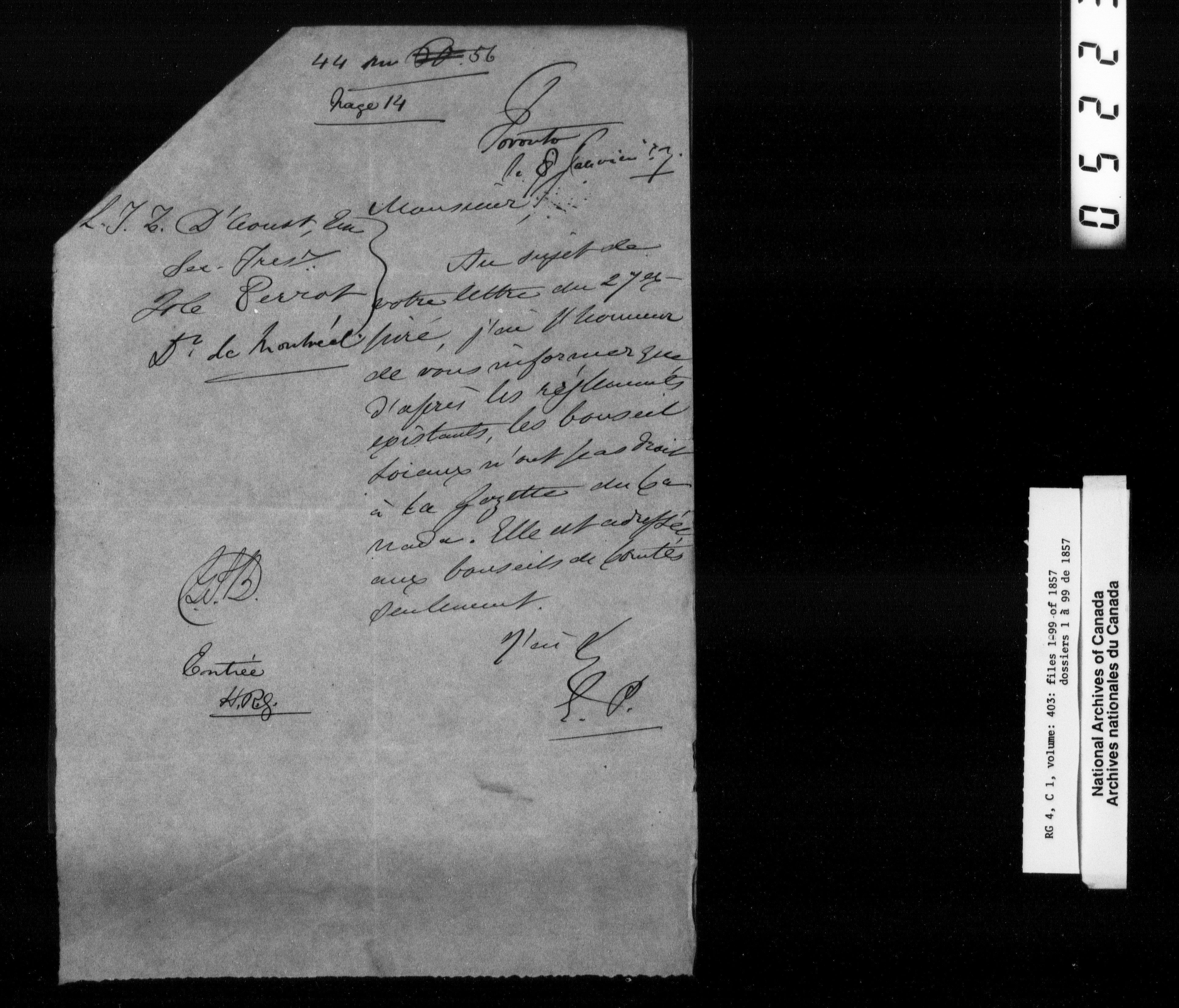 Canada East : Provincial Secretary numbered correspondence files, 1839-1867 - 2701