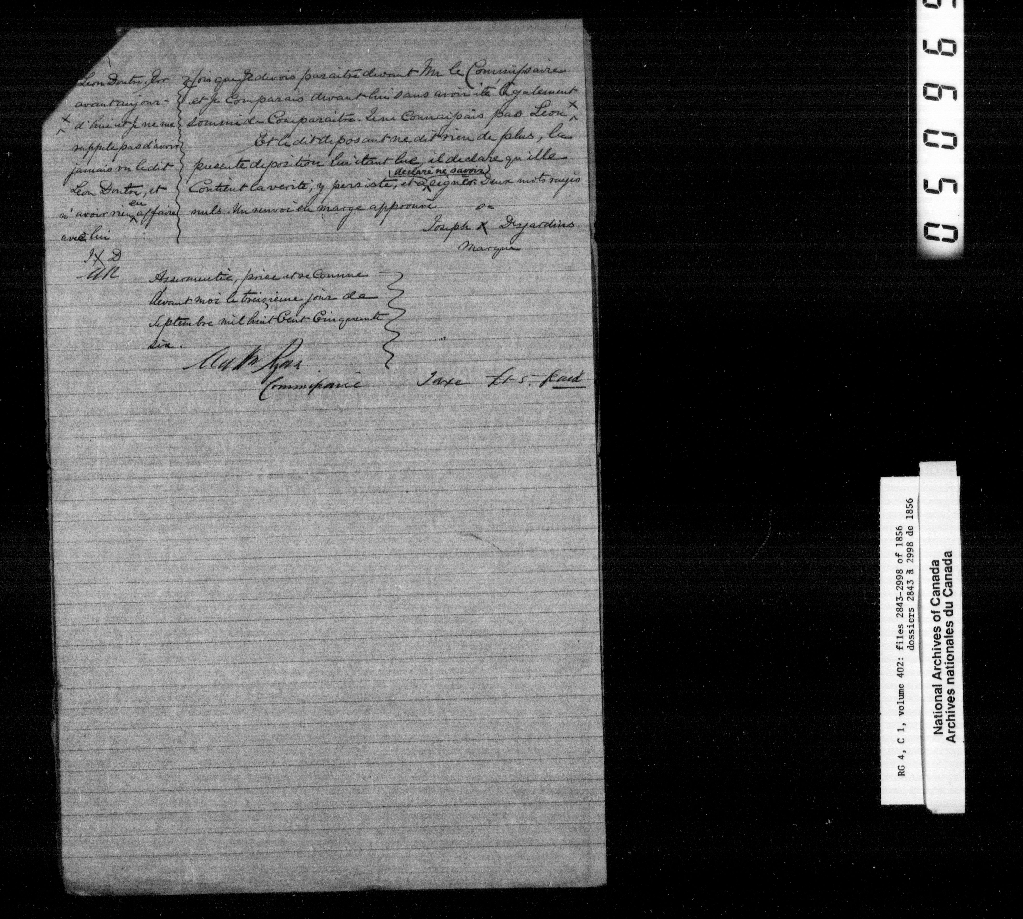 Canada East : Provincial Secretary numbered correspondence files, 1839-1867 - 2701