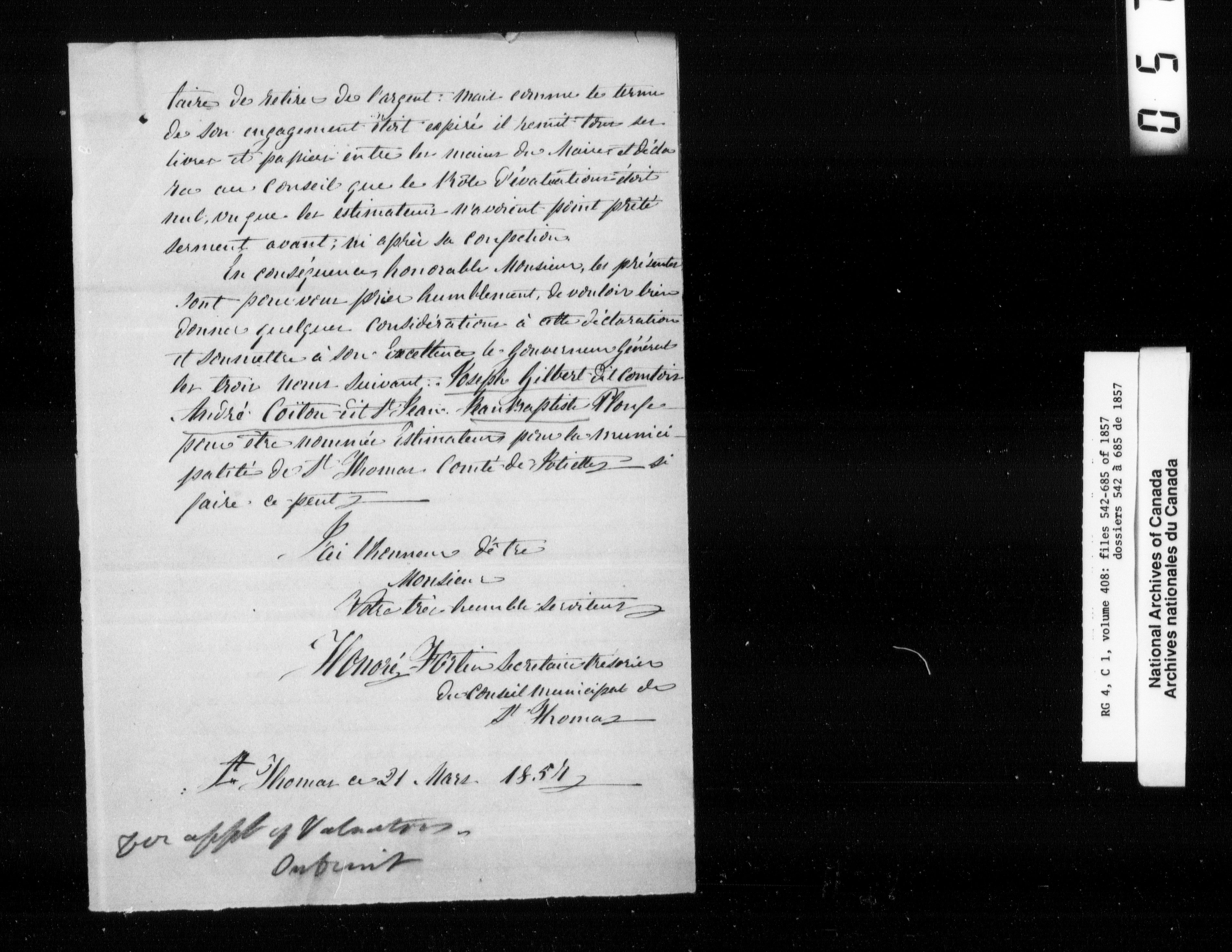 Canada East : Provincial Secretary numbered correspondence files, 1839-1867 - 2705